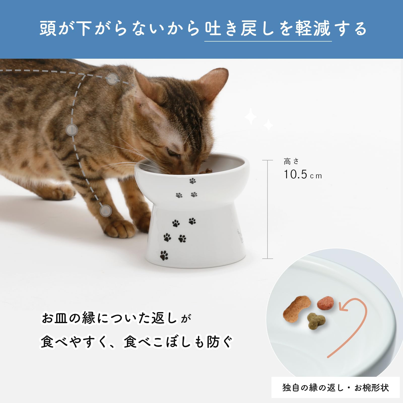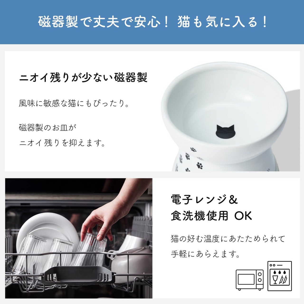 「猫工学」に基づいたデザイン食器で、猫が負担なくごはんを食べられます。