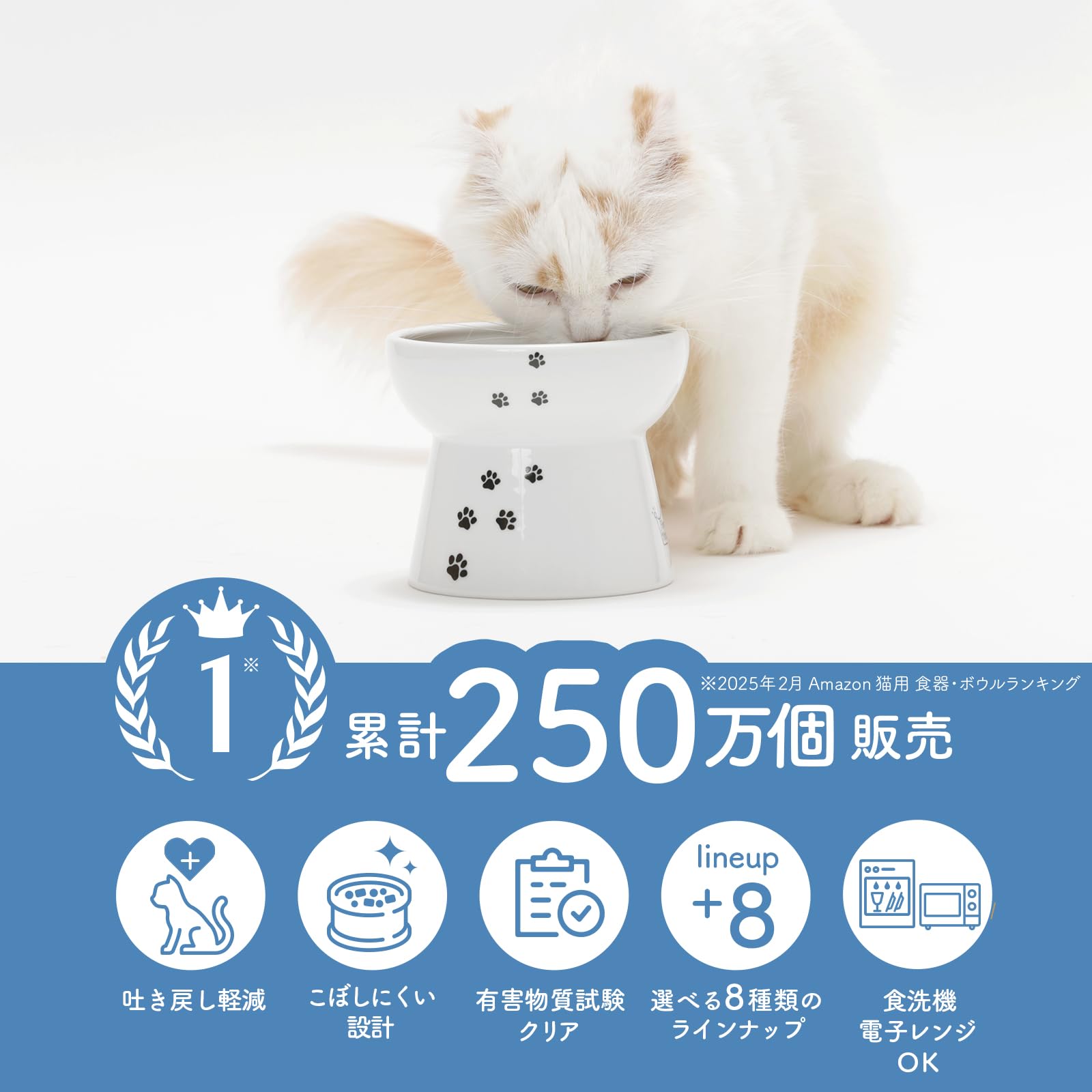 猫壱(necoichi)ハッピーダイニング 猫用 脚付フードボウル L 猫柄 吐き戻し軽減 電子レンジ&食器洗浄機対応