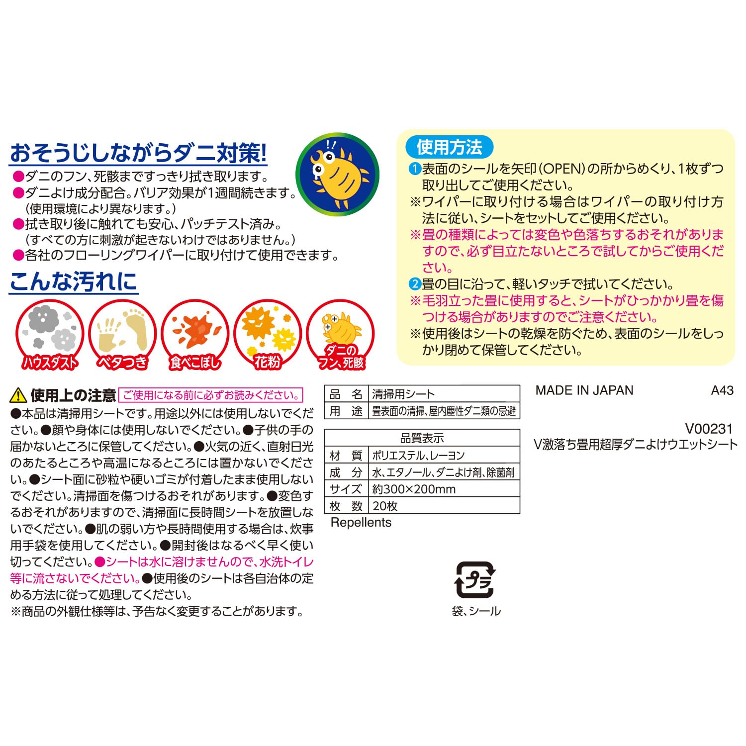 レック(LEC) バルサン 激落ち 畳用 ダニよけ ウエットシート (20枚入) 超厚タイプ 1週間ダニよけ効果