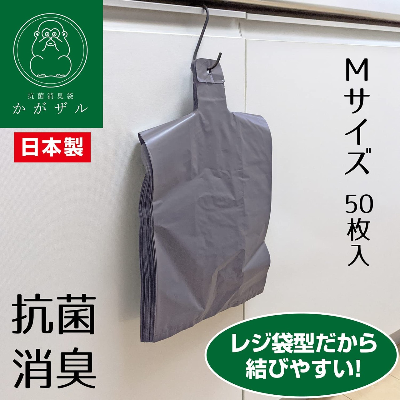 【日本製】ファイン 抗菌 消臭袋 かがザル におわない ゴミ袋 清潔 色付き Mサイズ 約6.7L 50枚 (43×22×マチ13cm) FIN-973M50