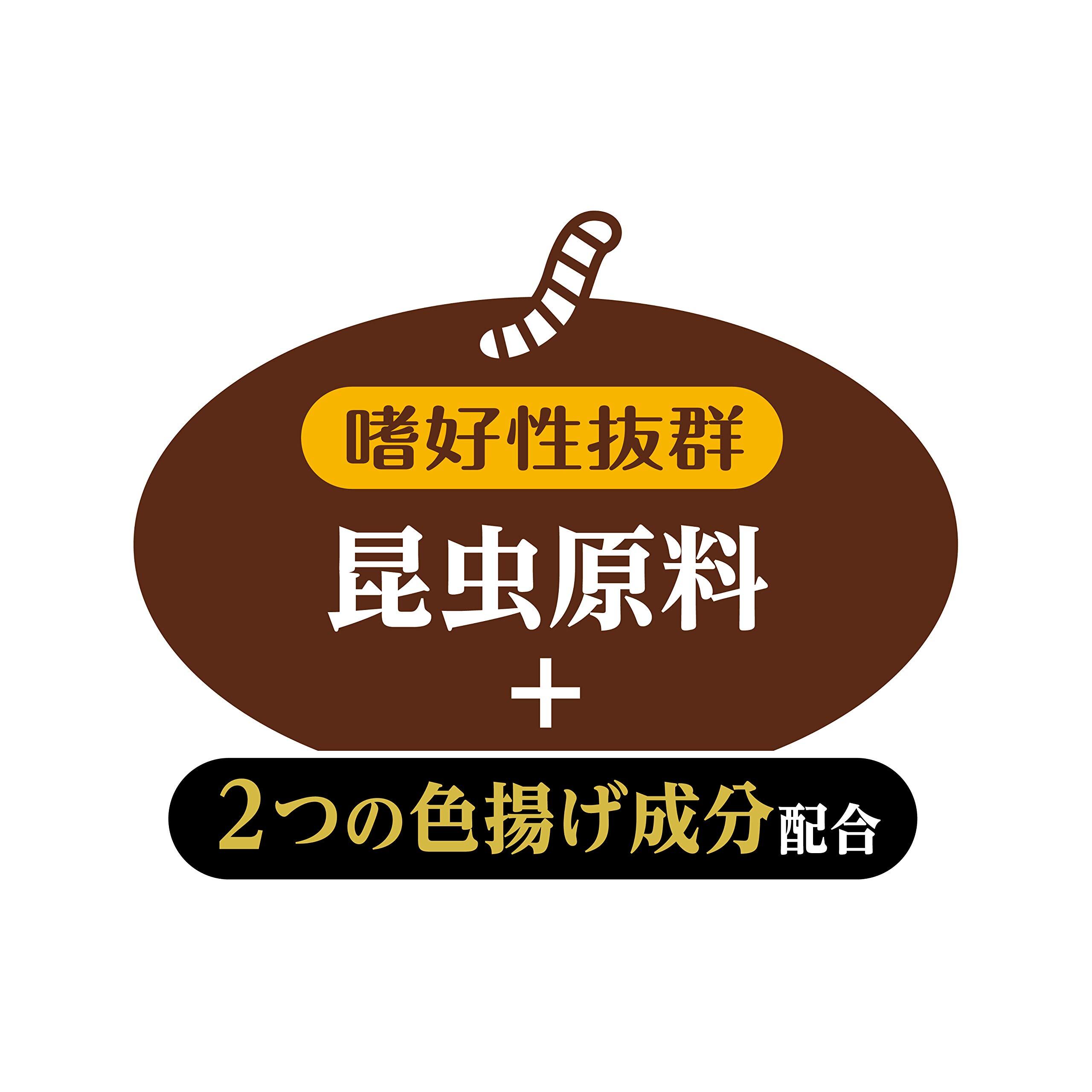 ●本来の美しさを引き出す ●嗜好性抜群 昆虫原料+2つの色揚げ成分配合 スピルリナとシュリンプミールに含まれるアスタキサンチンの2つの色揚げ成分配合で、熱帯魚の健康と美しい体色を維持します。 ・良質なたんぱく源である昆虫原料を配合。熱帯魚本来の食性に近づけ、嗜好性にもこだわりました。 ・消化吸収に優れた原材料を使用。熱帯魚の健康に必要な栄養素をバランスよく配合しました。 ・3つの善玉菌配合 乳酸菌・酵母菌が健康な腸内環境を保ち、さらに納豆菌がフンや食べ残しを分解、水の汚れやニオイを抑えます。 【すべての熱帯魚用】 <与え方> 1回5分以内に食べつくす量を1日に1-2回与えてください。●水を汚しにくい製法のフードですが、与えすぎは水質を悪くしますので、ご注意ください。※エサの色、サイズが変わることがございますが、品質には問題ございません。 内容量: 100g 成分:たんぱく質45.0%以上、脂質6.0%以上、粗繊維4.0%以下、灰分15.0%以下、水分4.0%以下