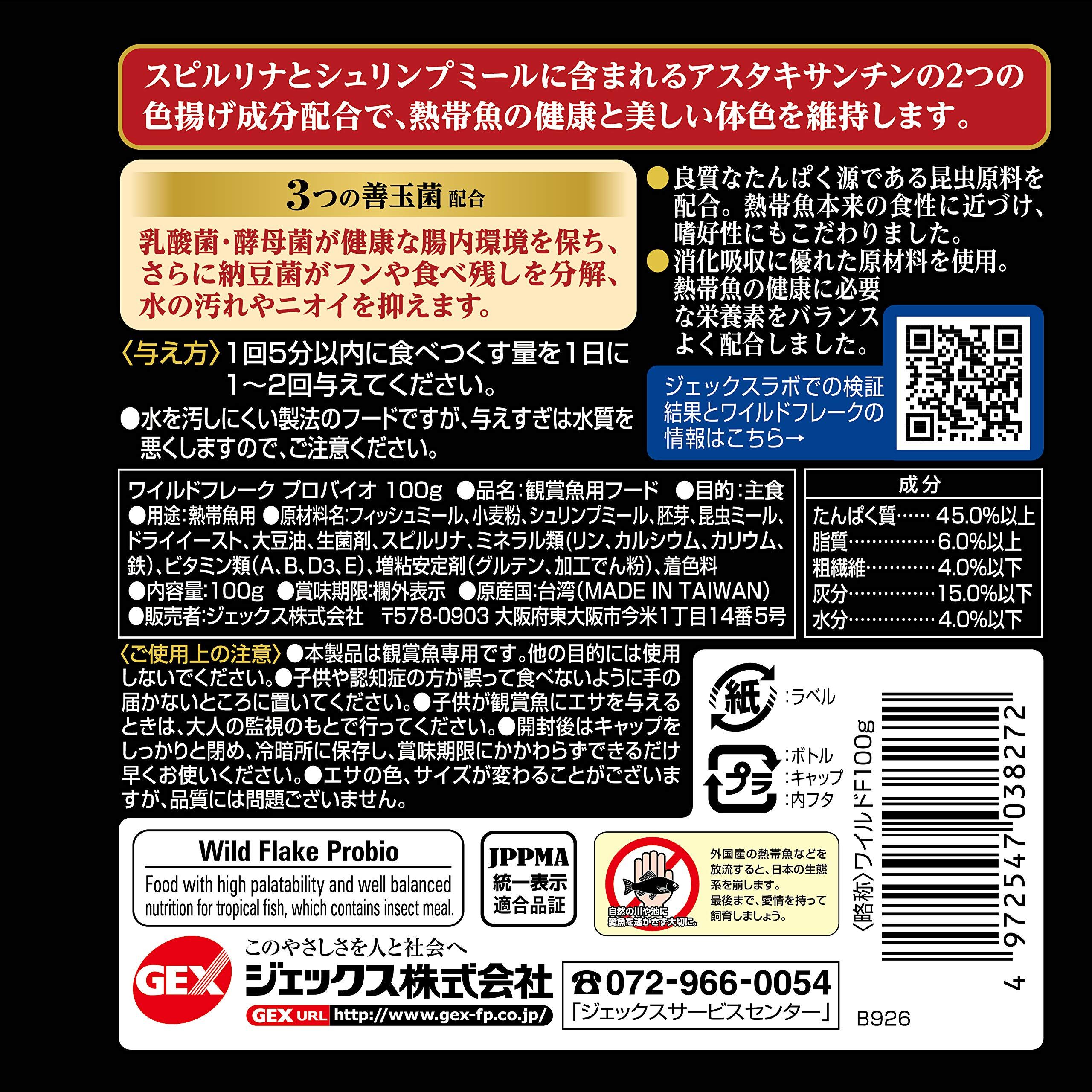 ジェックス GEX ワイルドフレークプロバイオ 熱帯魚・メダカ用フレークフード 昆虫原料・色揚げ成分・善玉菌配合100g