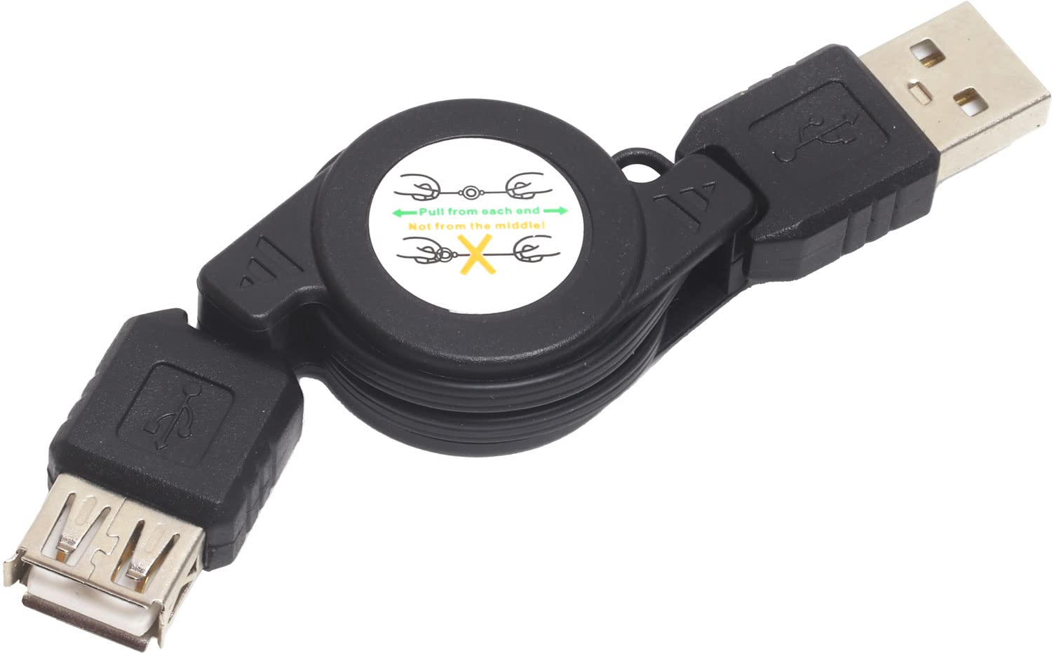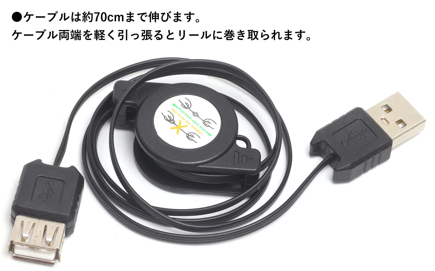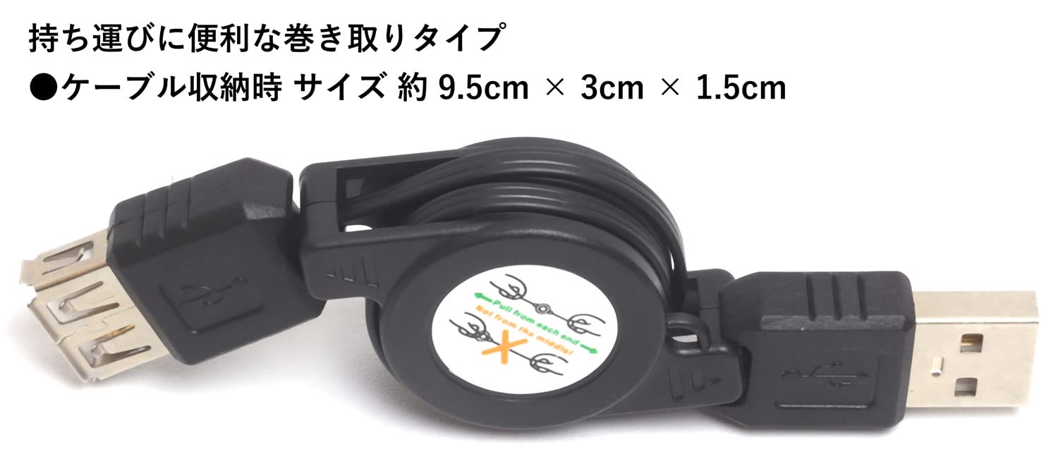 オーディオファン USB用 延長ケーブル 巻き取りタイプ USB2.0 USB Aプラグ-Aソケット 充電・データ転送対応 延長 ケーブル ブラック 最長70cm
