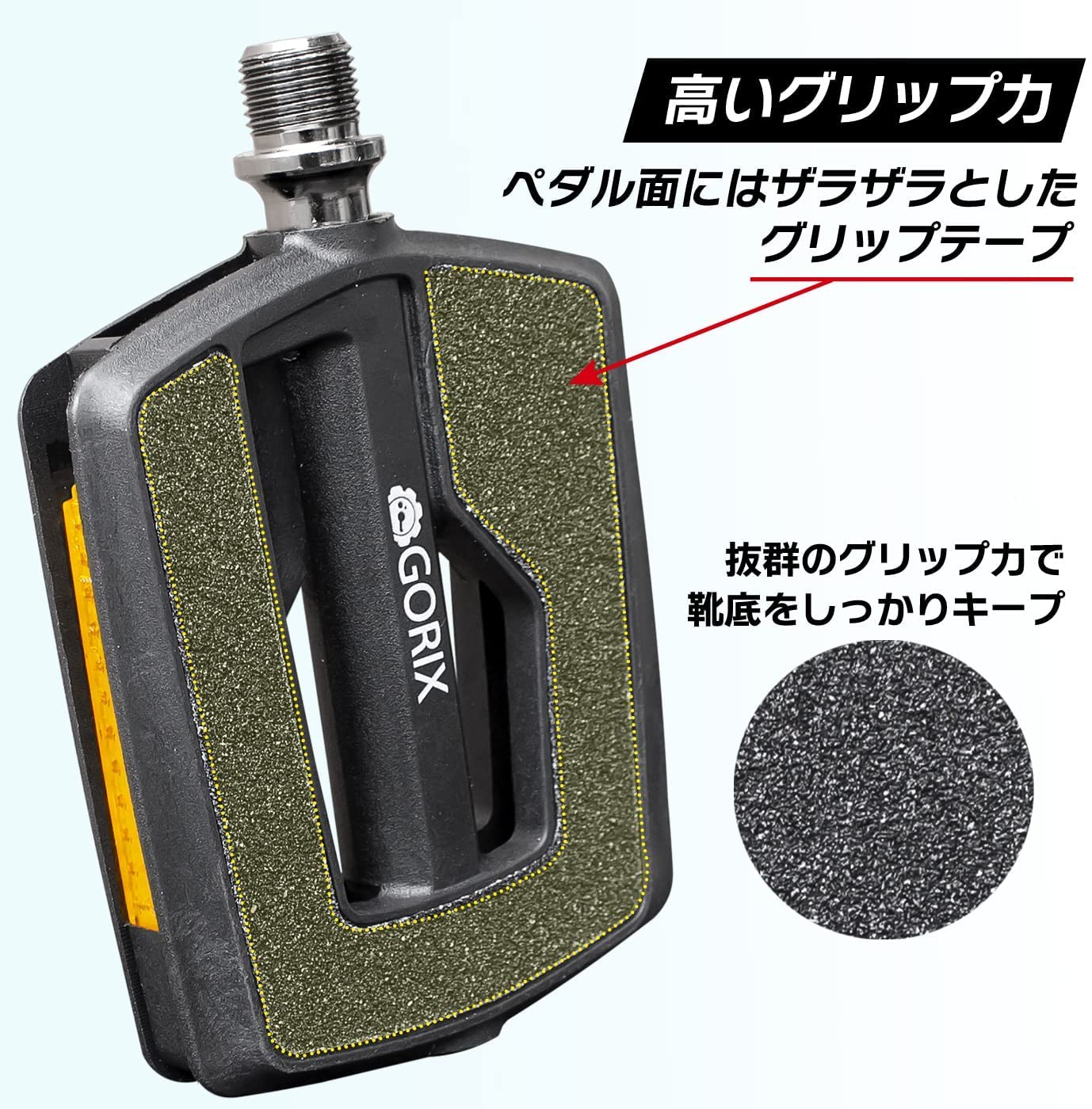 GORIX(ゴリックス) 自転車ペダル ノンスリック フラットペダル 高いグリップ力 表面滑り止め加工ブラック (GX-F558) [ リフレクター 反射板付き ナイロン・靴に優しい表面グリップ・滑り止め・幅広ワイド ] ロードバイク クロスバイク MTB他自転車対応 通勤通学