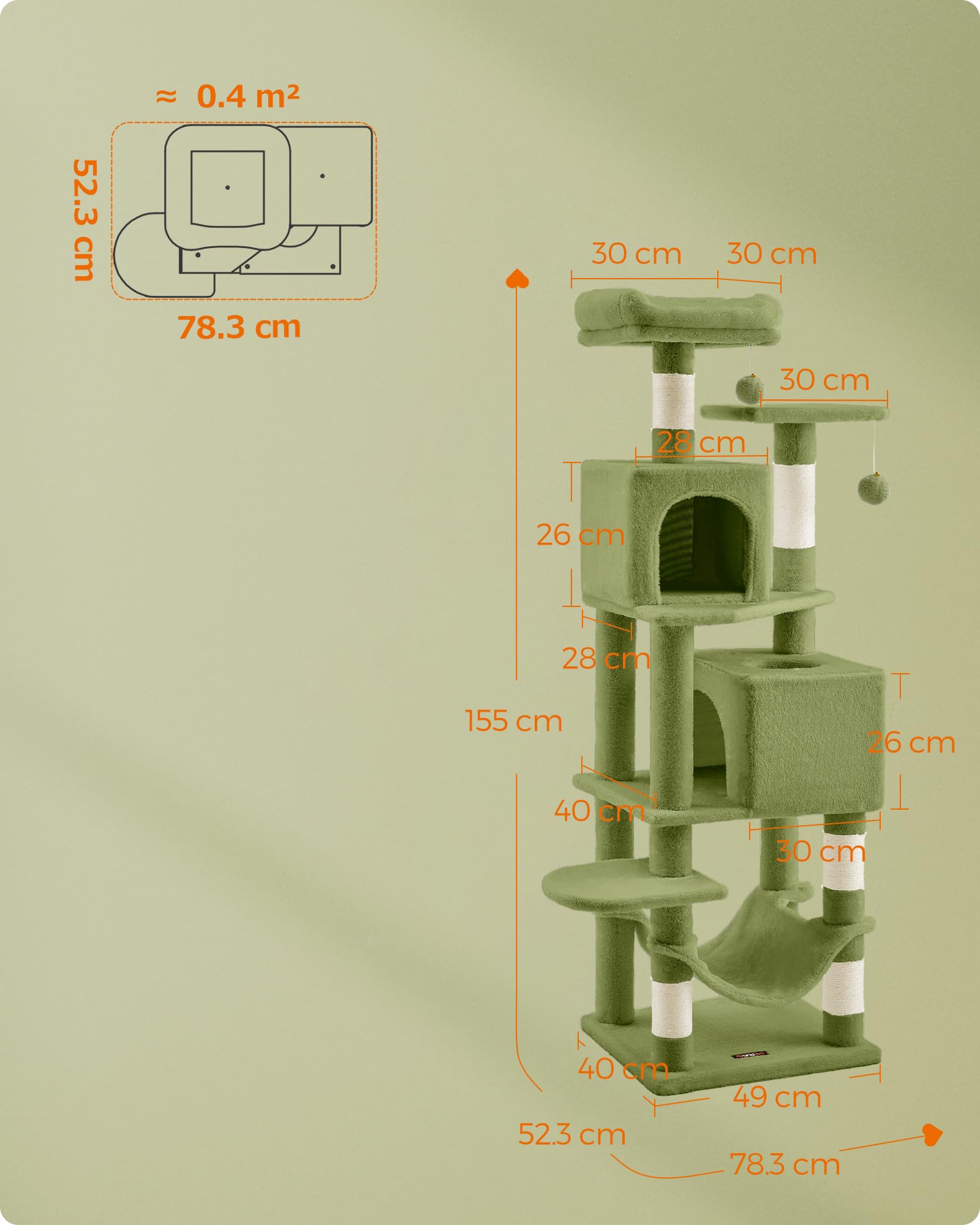 【新春セール】FEANDREA キャットタワー 猫タワー スリム 人気 大型猫 多頭飼い 据え置き 省スペース ハンモック付き 爪とぎ 運動不足解消 おしゃれ 高さ155CM グリーン PCT192C02 | ニコニコSHOP