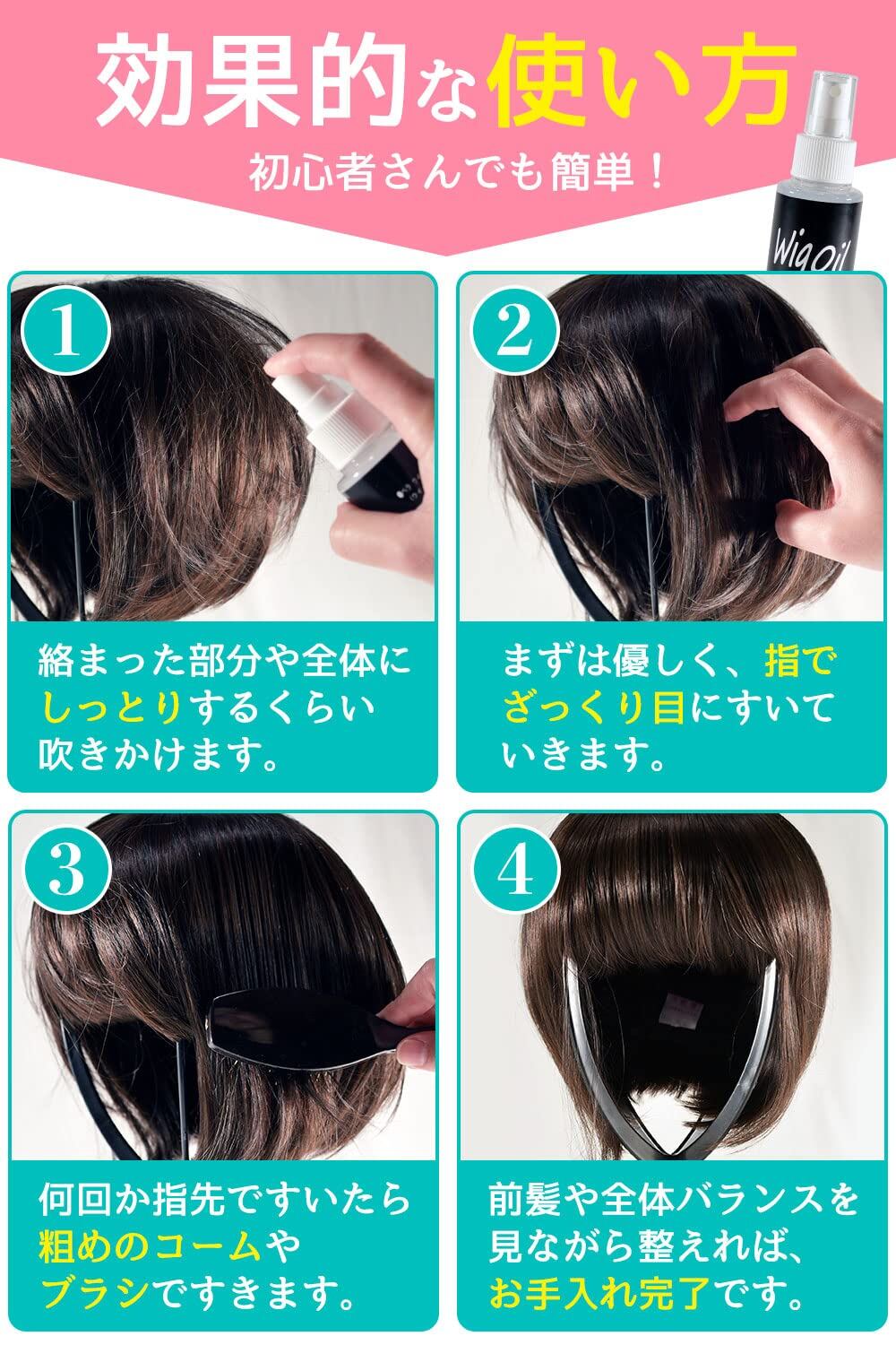【新春セール】MilicaBooks ウィッグケア4点セット ウィッグオイル 120ml ウィッグスタンド ウィッグブラシ ウィッグネット ミストタイプ 無香料 除菌 消臭 つやつや さらさら スプレー | ニコニコSHOP