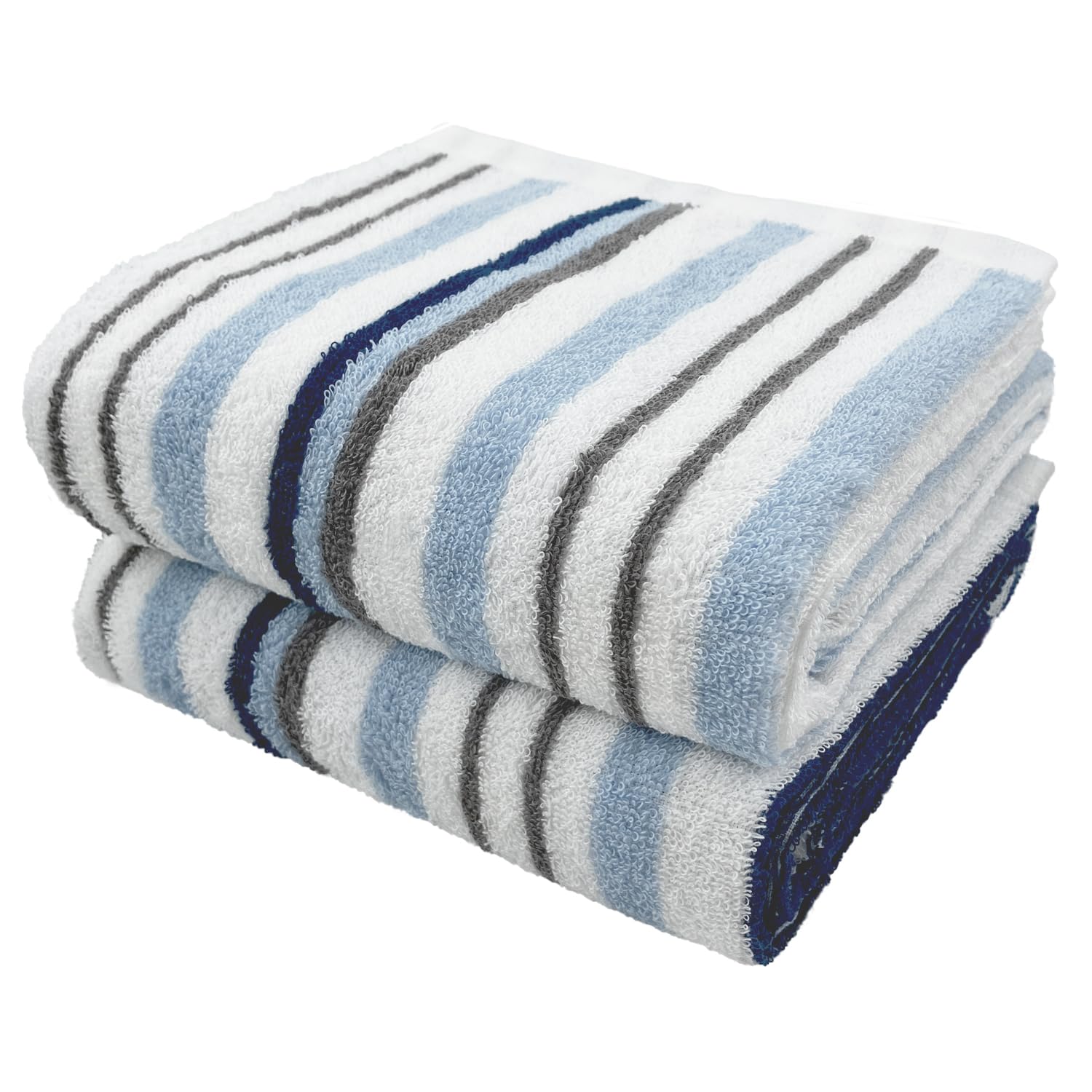 リピートサイン(:re) デイリータオル【しっかり】 ストライプ バスタオル ブルー 2枚 綿100% 60×120cm 普段使い用 タオルケットや敷物にも