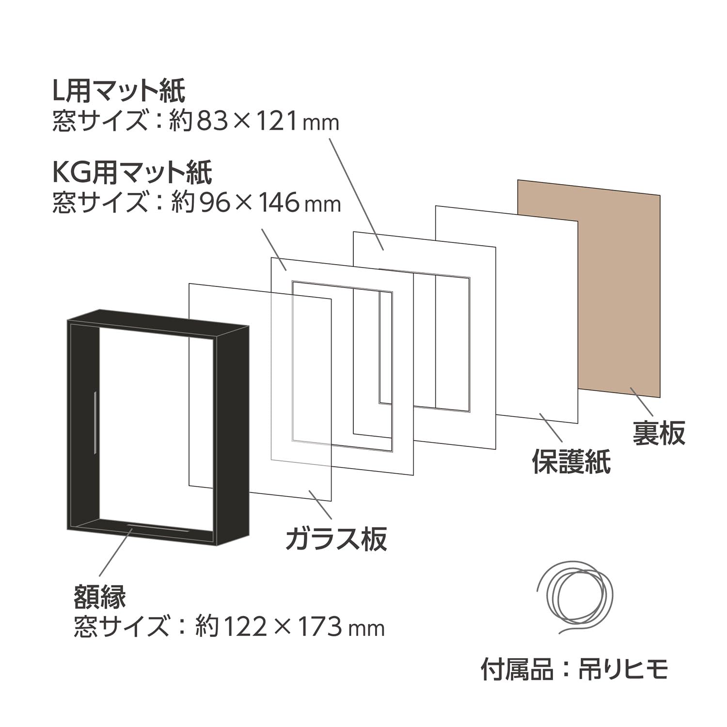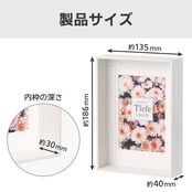 フレーム材質:木製、額縁外寸法:約W135×H186×D40mm、前面板:ガラス、重量:約260g