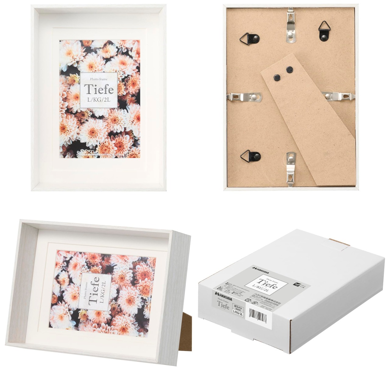 ハクバ HAKUBA 木製額縁 Tiefe(ティーフェ) AZ ホワイト 奥行きのある木製フォトフレーム L/KG(ハガキ)/ 2L(カビネ)サイズ兼用 前面ガラス板 AMZFWTF-WT 4977187001518