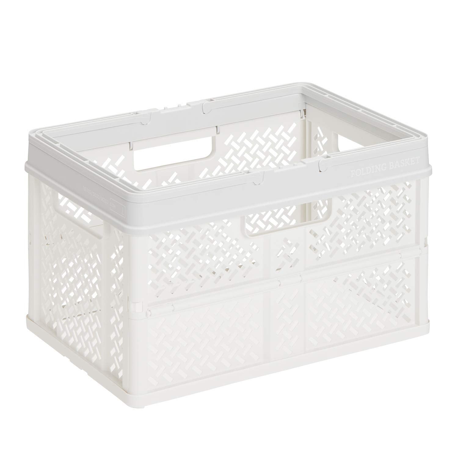 【在庫セール】天馬(Tenma) 折りたたんでコンパクトになる持ち手付きの収納ボックス 完成品 折りたたみバスケット Lサイズ お部屋に馴染むデザインの折り畳みコンテナ オリコン カゴ B4ファイルがぴったりのバスケット プラスチック 【組立不要】 【色 スモーキーホワイト】 【サイズ L】 【幅46×奥行31×高さ28cm】【折りたたみ時 高さ7cm】 | ニコニコSHOP