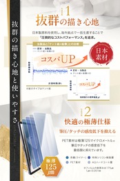 【快適の 極薄仕様 】 フィルム のPET部は厚み 0.125 マイクロメートルの極薄仕様。 筆圧 や タッチ の 感度低下 を 最低限 に抑えています。
