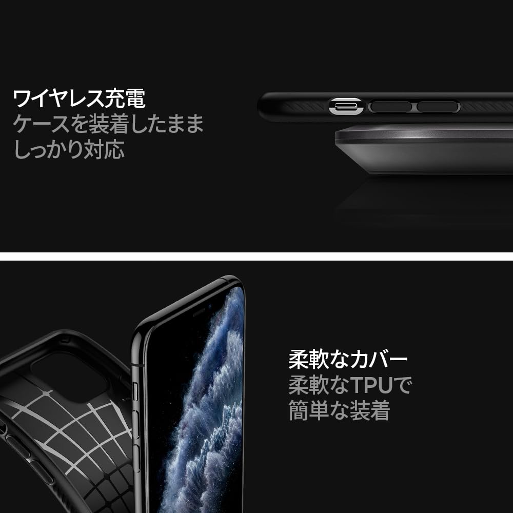 【Spigen】 iPhone11Proケース 耐衝撃 米軍MIL規格取得 TPU カメラ保護 傷防止 衝撃吸収 Qi充電 ワイヤレス充電 リキッド・エアー 077CS27232 (マット・ブラック)