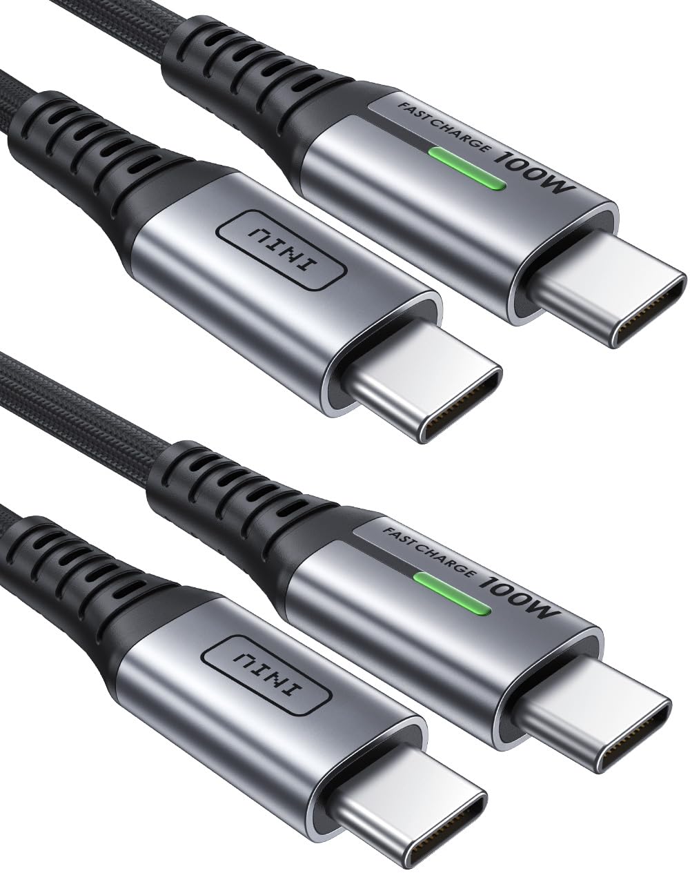 INIU USB C ケーブル (2本セット 2m) 100W 5A PD QC4.0 急速充電 高速データ転送 高耐久ナイロン編み Type C to Type-C USBケーブル タイプC 充電ケーブル iPhone 17 16 15 Samsung Galaxy MacBook Airpods iPad Xiaomi OPPO Sony Xperia Google Pixel等に対応