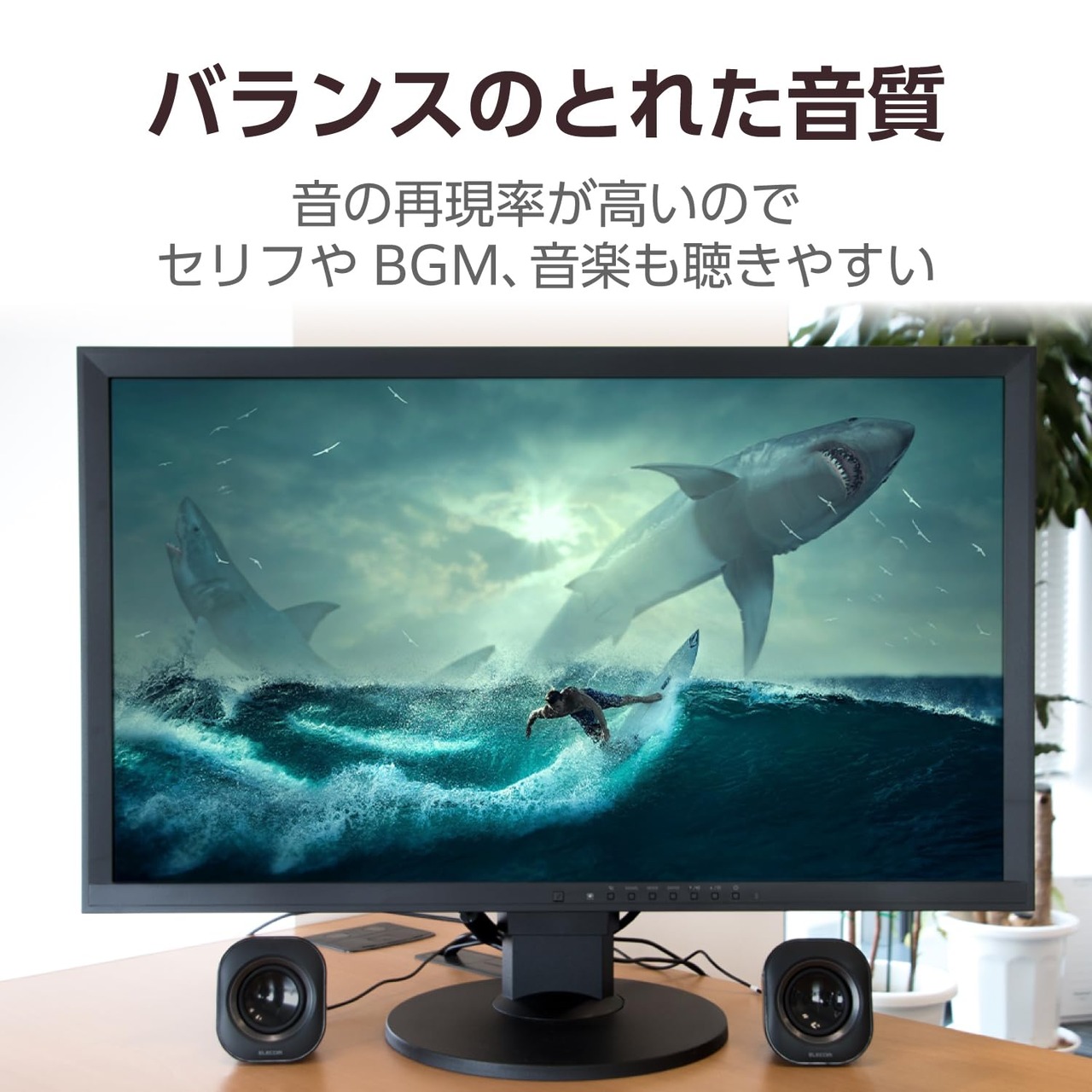 エレコム PC スピーカー 3.5㎜接続 コンパクト 軽量 簡単接続 【PC・スマホ・音楽プレイヤーなどに】 ブラック MS-P08UECBK