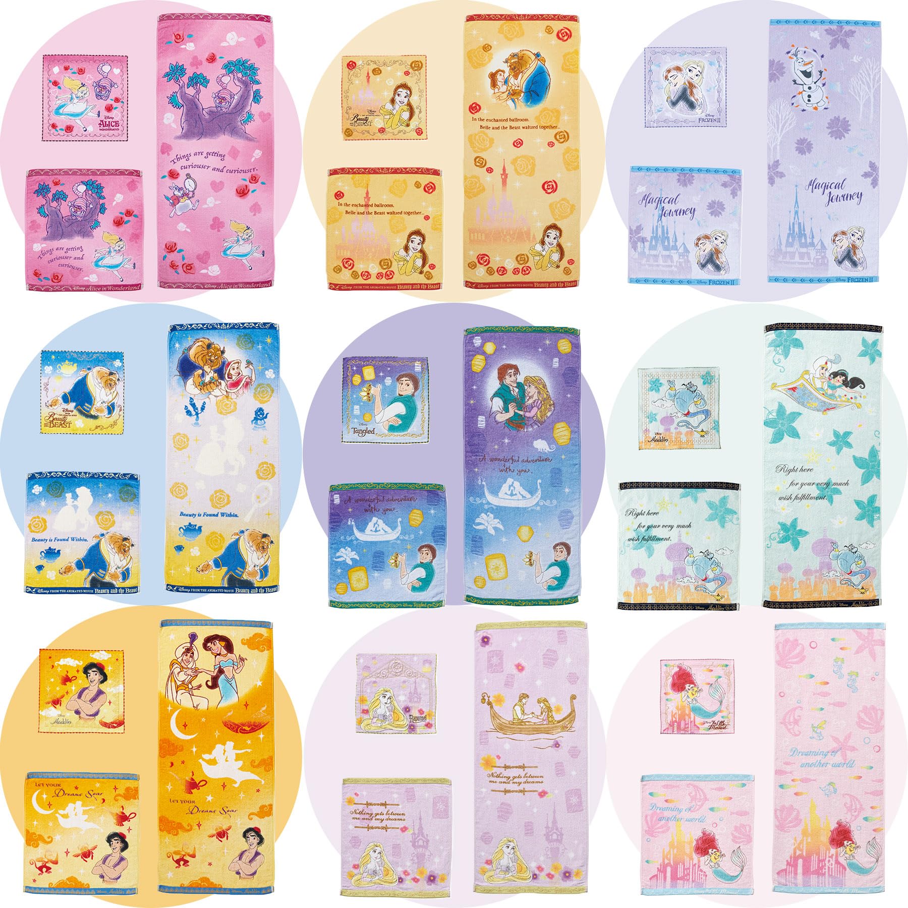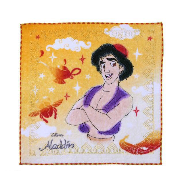 アラジンがデザインされた、淡い水彩画タッチのプリントと繊細な刺繍が美しいタオルです。