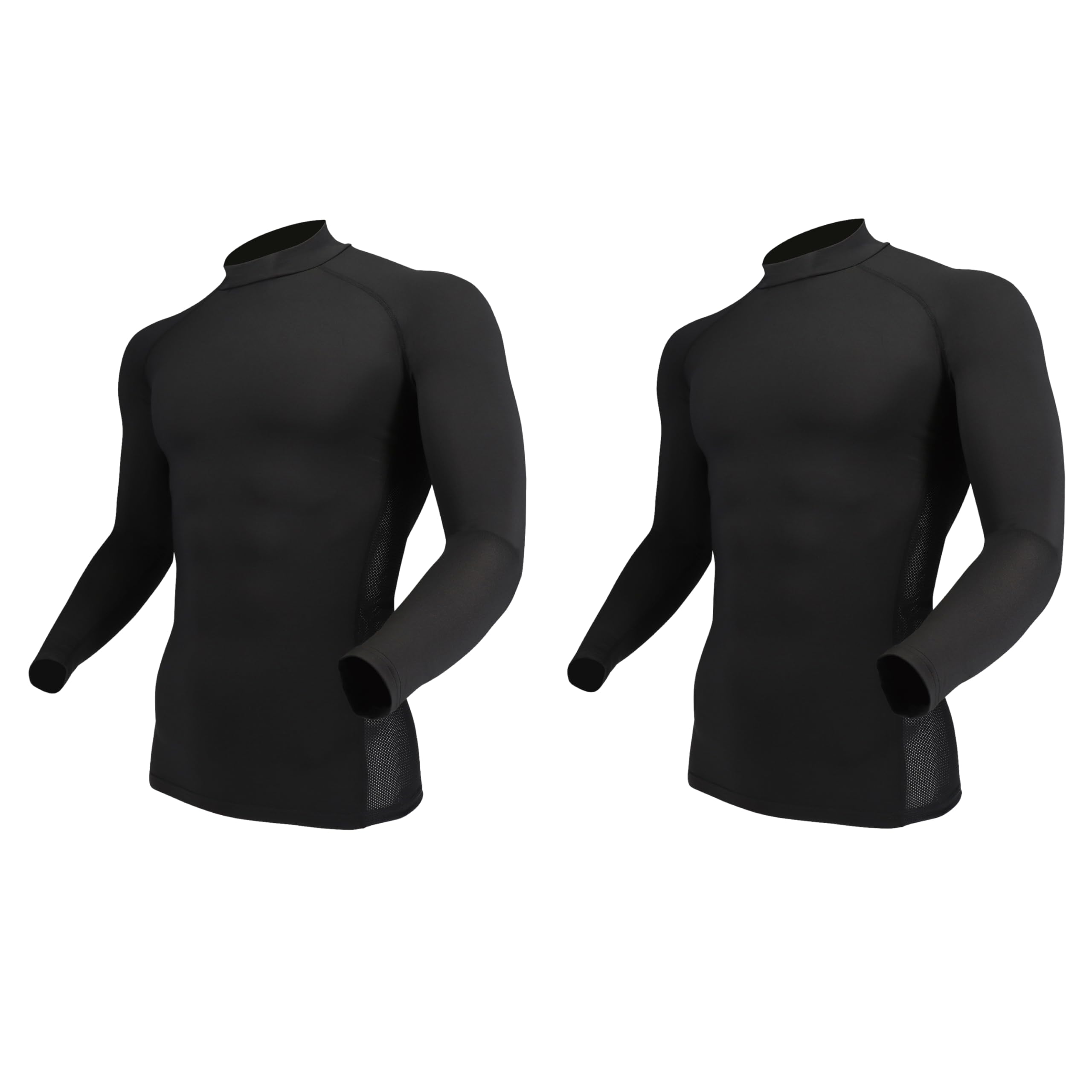 おたふく手袋(Otafuku Glove)おたふく限定ステッカー付 おたふく手袋 夏用インナー 長袖 ハイネック [接触冷感 吸汗速乾 消臭 コンプレッション UVカット メンズ] JW-625 ブラック Lサイズ 【2枚組】