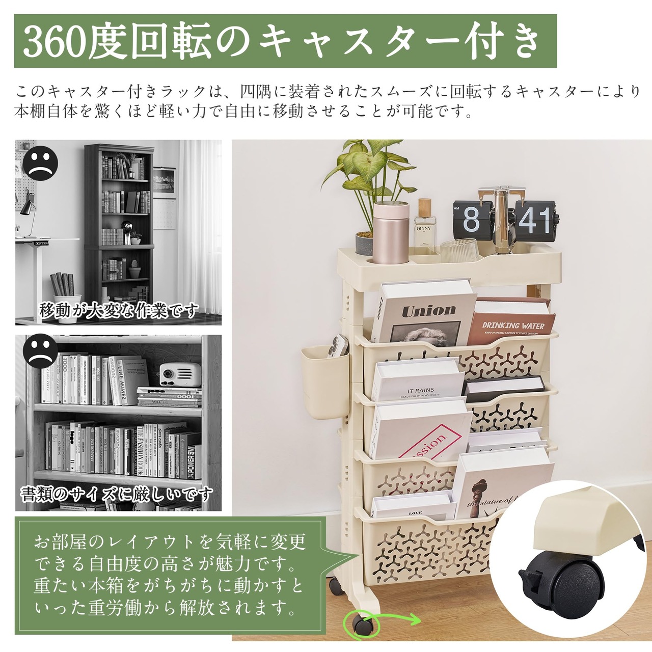 【新着商品】VECELO 書架 スリム本棚 教科書収納 3段 幅39X奥行き18.8X高さ54.5cm ファイルワゴン 可動式 隙間収納 組立簡単 多機能 キャスター付き インテリア 大容量 安定性 本立て 省スペース 北欧 オープンシェルフ マガジンラック 子供用 学生用 教室 オフィス リビングルーム 漫画 絵本 ベージュ | ニコニコSHOP