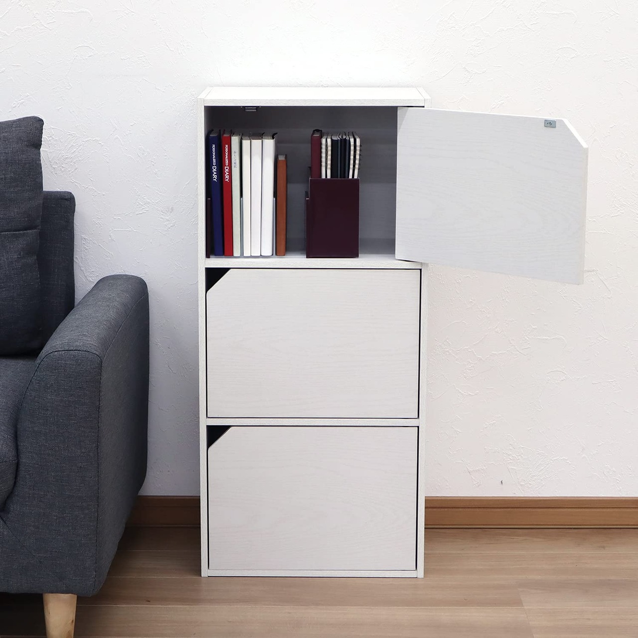 エイアイテック(AITECH)ドア付きカラーボックス3段 ホワイト CO-16 WH