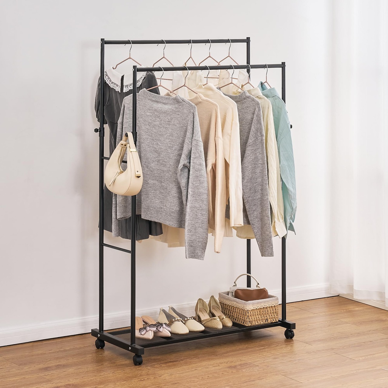 VECELO ハンガーラック キャスター付き 省スペース 頑丈 室内干し 大容量 コンパクト 洋服ラック 防錆加工 服掛けるスタンド 部屋干し 子供 組立簡単