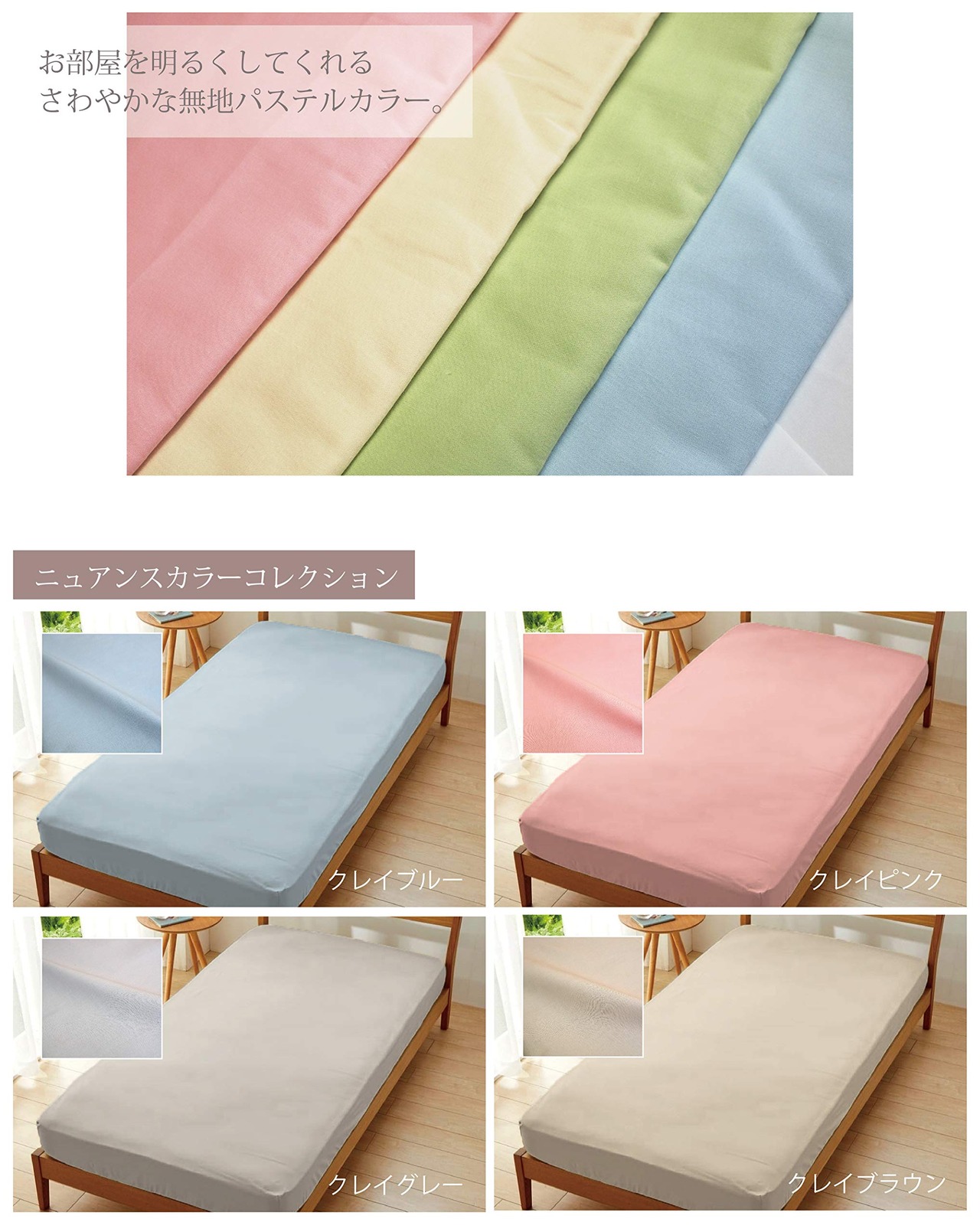 ゴム式ですのでお一人で簡単に掛けやすく、どんなお布団やお部屋にも合う4色をご用意!