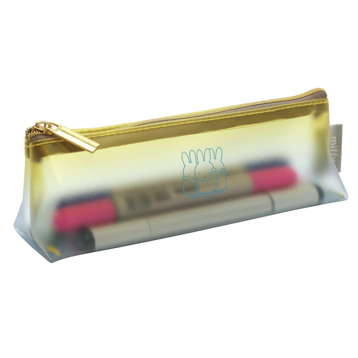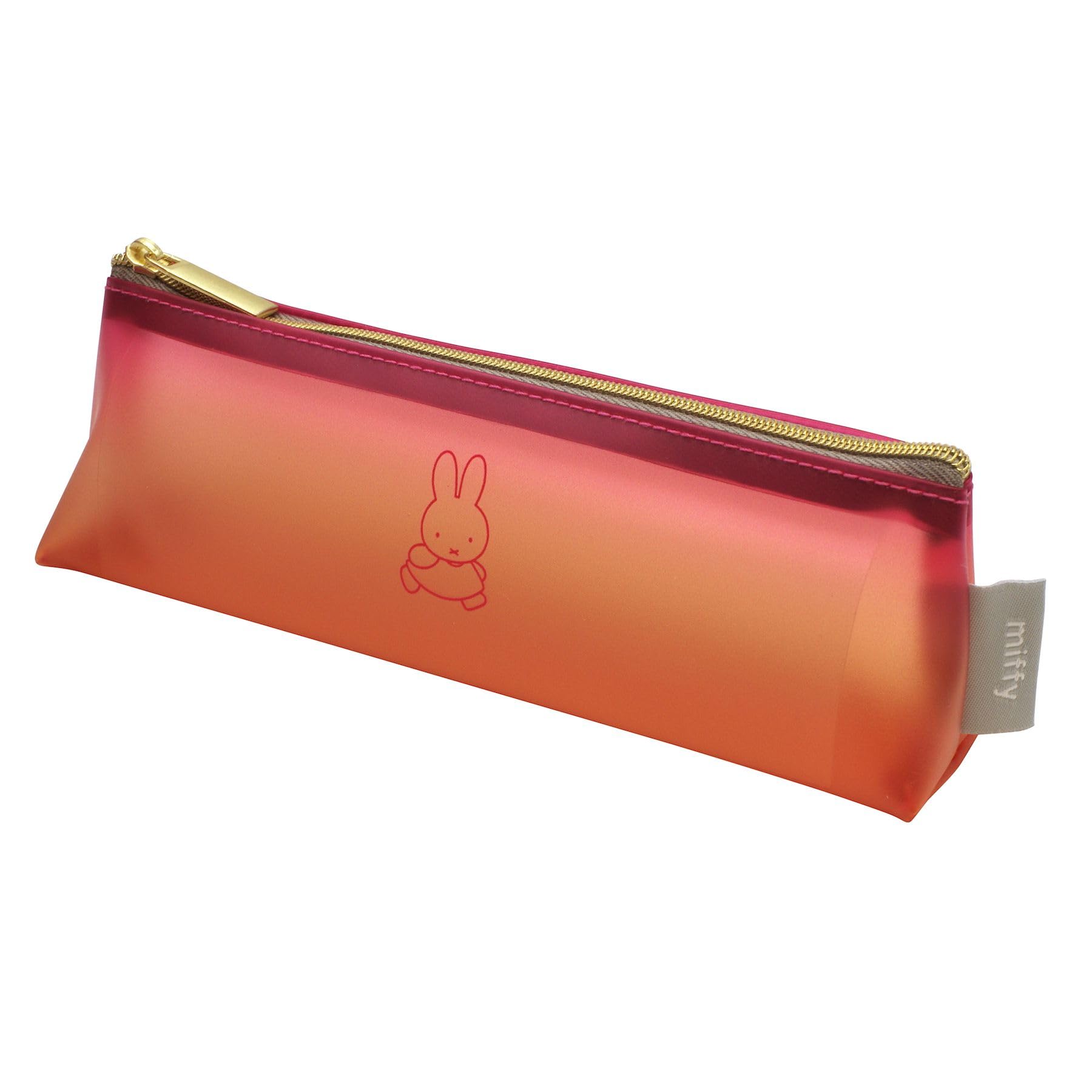 【ミッフィー】グラデーションとイラストをシンプルに組み合わせたカラートーンシリーズ。 ほんのり透ける/マットな質感/あたたかみのある手触りなど素材感にもこだわった、 大人の方にお使いいただきたいシリーズです。 マットな質感のPVCにグラデーションをプリントした、 色の重なりが美しいペンポーチ。