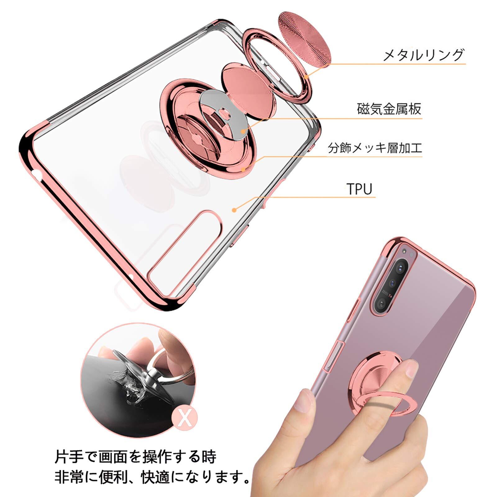 Xperia 5 II ケース SO-52A カバー リング クリア TPU 耐衝撃 透明 メッキ加工 SOG02 スマホケース 一体型 スタンド機能 車載ホルダー ストラップホール Sony エクスペリア5II ケース ローズゴールド