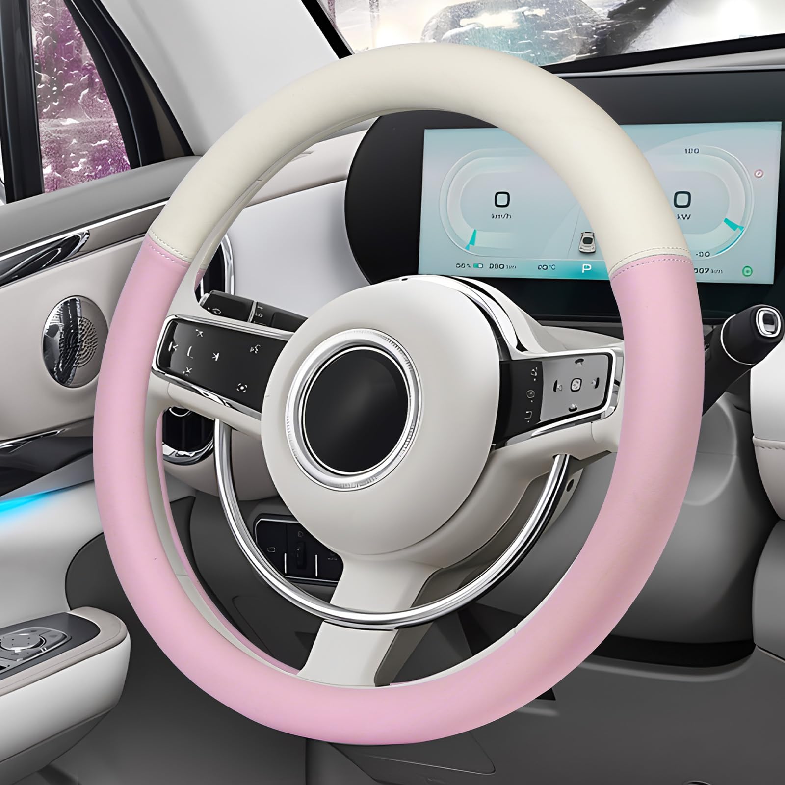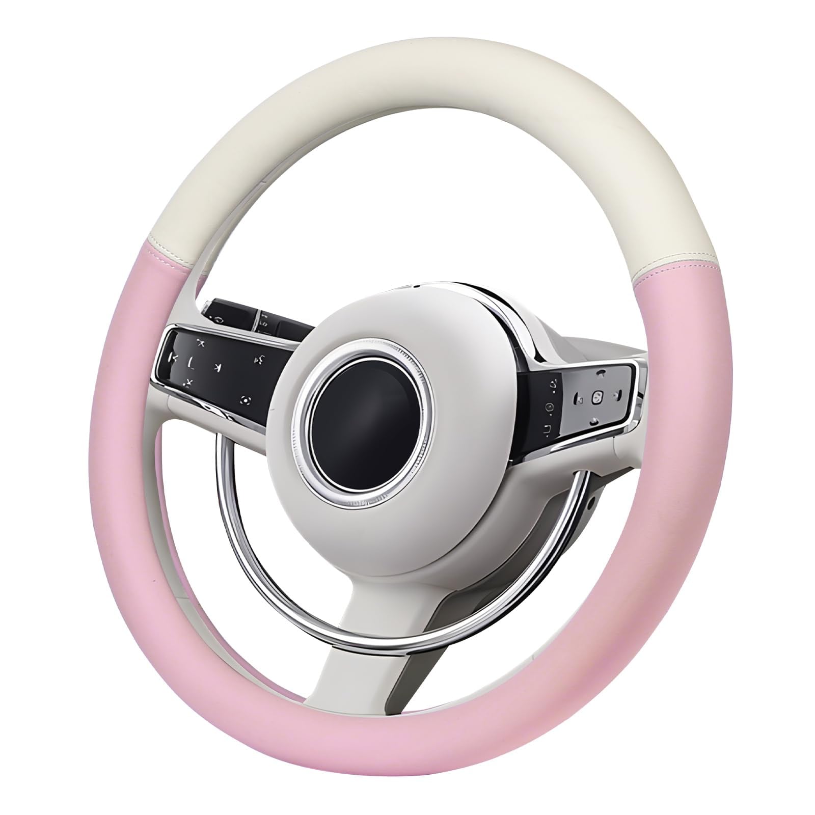 【数量限定】ZATOOTO ハンドルカバー バイカラー Sサイズ かわいい ステアリングカバー 軽自動車 おしゃれ ツートンカラー 普通車 適合多車種 タント ハスラー キャンバス ピンク LY172-P | ニコニコSHOP