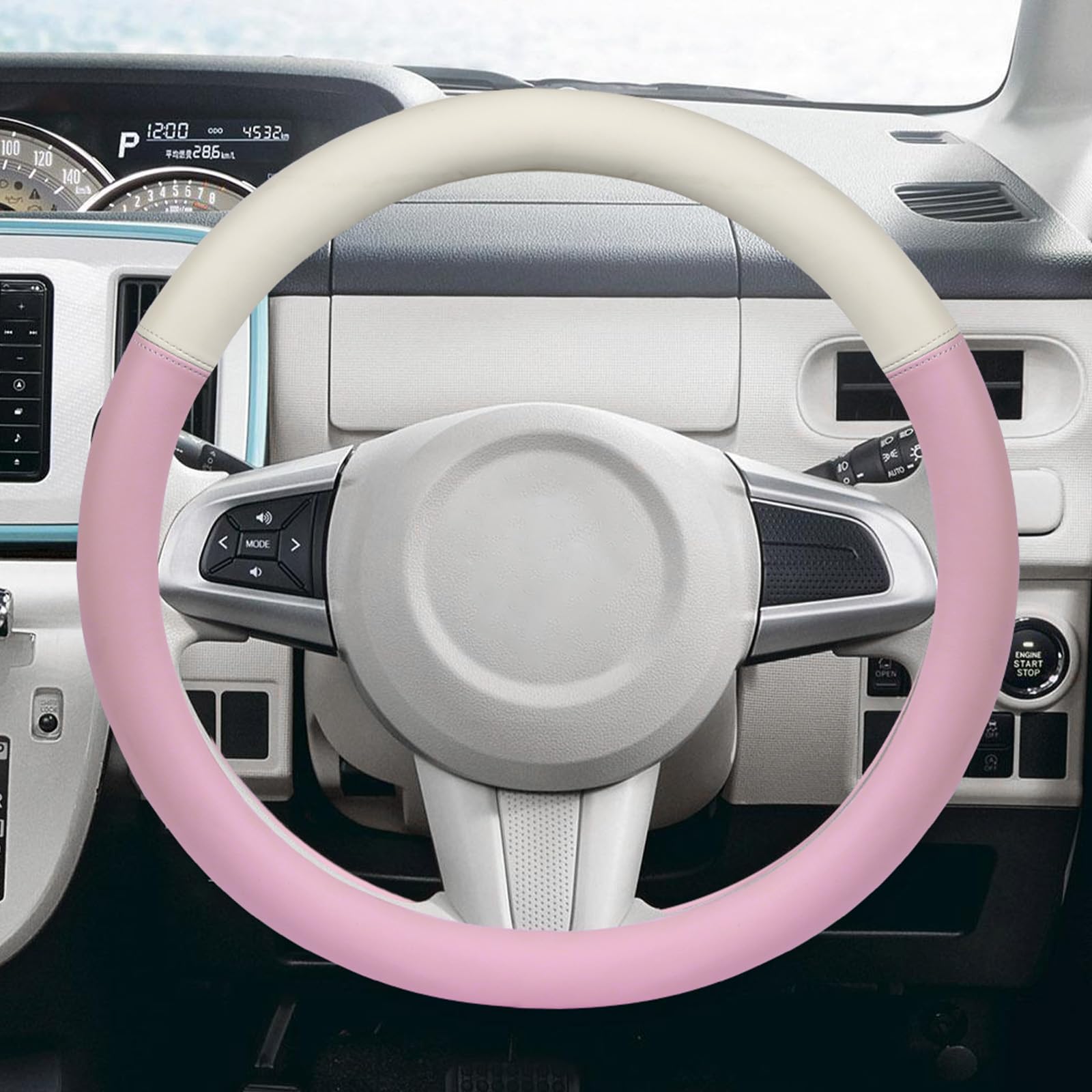 ZATOOTO ハンドルカバー バイカラー Sサイズ かわいい ステアリングカバー 軽自動車 おしゃれ ツートンカラー 普通車 適合多車種 タント ハスラー キャンバス ピンク LY172-P