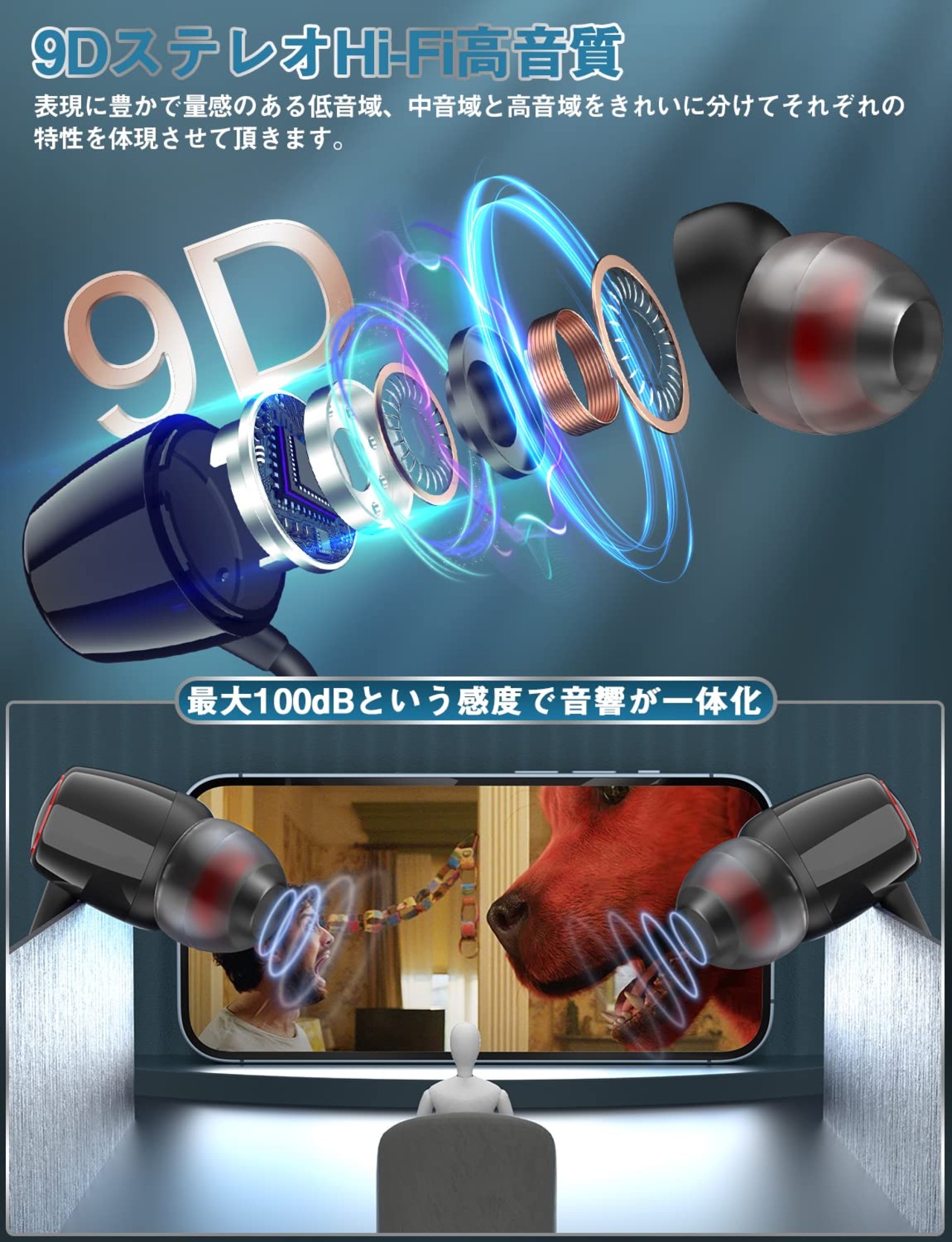 【Hi-Fi高音質・9Dステレオサウンド・CVC 8.0ノイズキャンセリング】複合鼓膜ダイナミックドライバーを備えており、AACとSBCコーデックも対応するのでーデックとはオーディオ機器からイヤホンへ音楽を伝送して、音声データを圧縮する方式で高品質なコーデックになって、コンサートのように、臨場感あふれる9Dステレオで、低遅延・高音質を実現できます。また、CVC 8.0ノイズキャンセリング技術により、よい遮音性で周りの雑音を適度にカットし、繁華街や駅構内、飛行機や電車内等うるさい場所でも、周囲の環境音に左右されることなくクリアな音楽視聴や通話をサポートしてくれます。イヤホンには指向性のマイクが内蔵されていて、周囲のノイズをカットしてくれ、ハンズフリー、クリアな通話にも対応しています。
