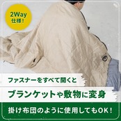 2つのシュラフを連結させることも可能なので、お子さまと一緒に寝ることができる。連結時のサイズは約155×190cm。