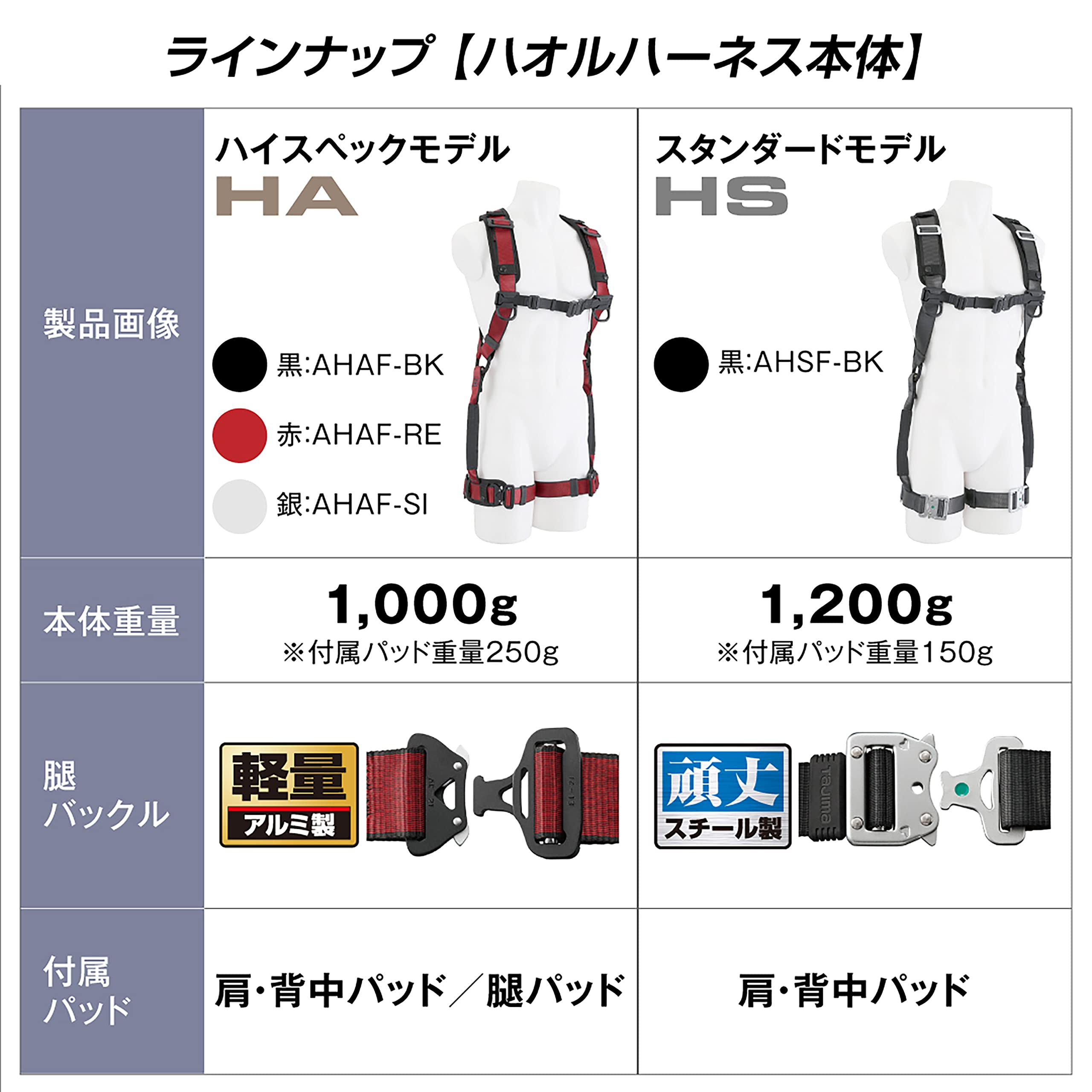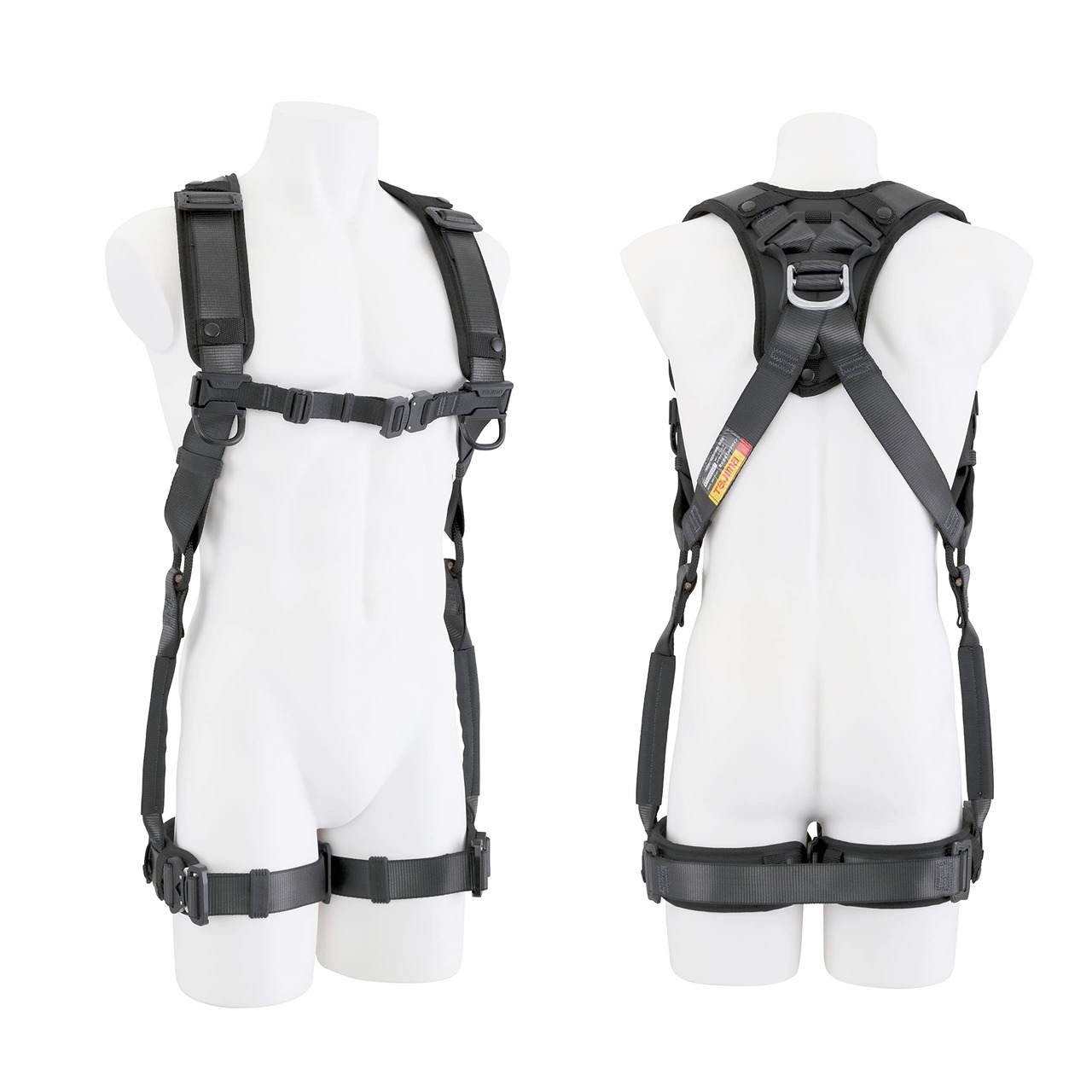 ●種類:フルハーネス型●肩・背中/腿パッド付●腿バックル:着脱が容易な、軽量アルミ製腿ワンタッチバックル●付属パッド:フィット性に優れたソフトクッション採用