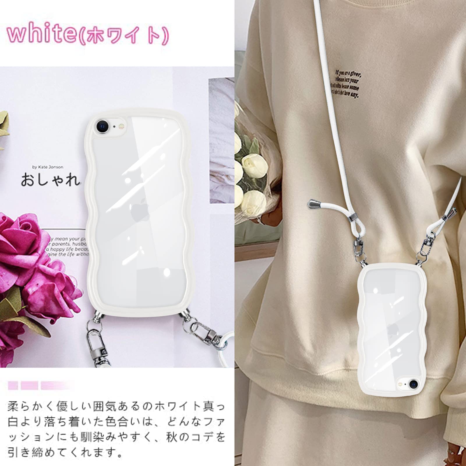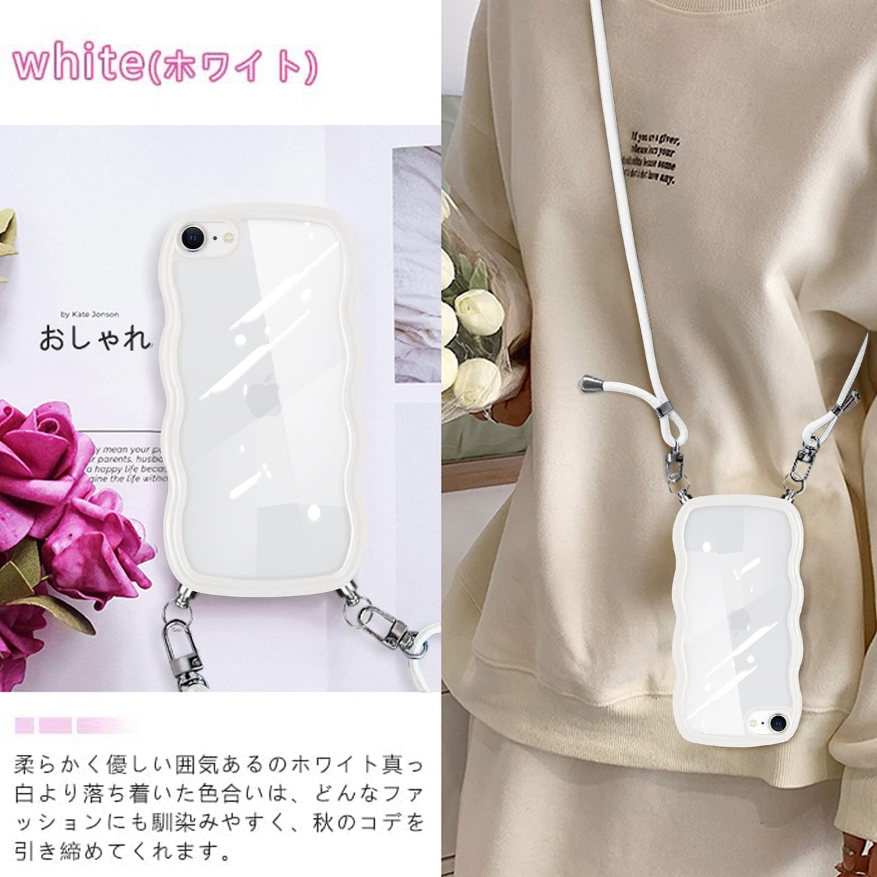 iPhone SE3 SE2 用 ケース クリア ショルダー SE 第3世代 第2世代 iPhone8 iPhone7 カバー スマホケース 創意 個性 肩掛け 首掛け 斜めかけケース 可愛い かわいい 韓国 透明 TPU 薄型 耐衝撃 アイフォンSE3/SE2/8/7(ホワイト)