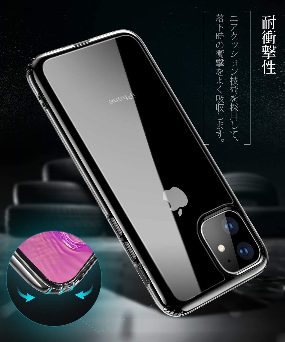 【強靭な耐衝撃性の安心】アイフォン11 ケースの背面の強化ガラスは32回の研磨加工が施され、業界最高レベルの硬度と耐衝撃性を誇ります。柔軟性のあるTPU素材を側面に使用し、四つ角には耐衝撃エアクッションが搭載され、落下時の衝撃を最小限に抑え、携帯をしっかり守ります。