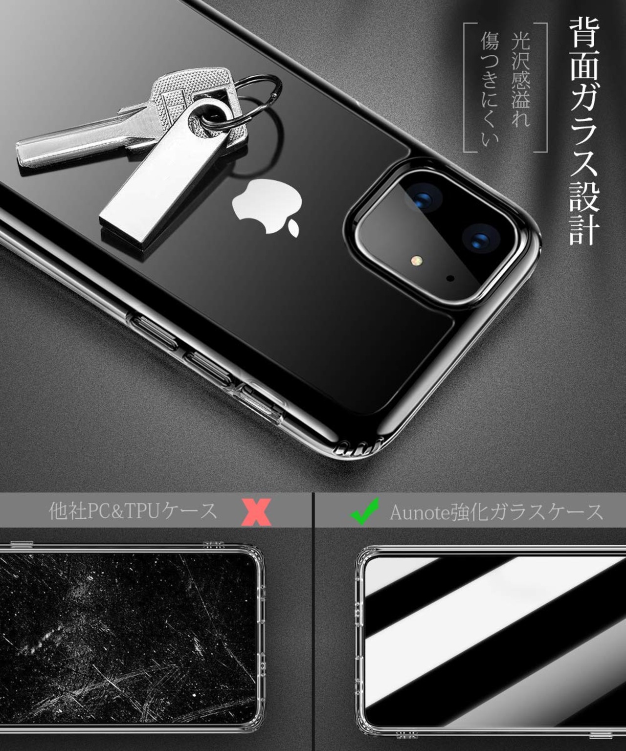 【特価商品】Aunote iPhone 11 ケース クリア ハード スマホケース 背面ガラス ストラップホール付き TPUバンパー 薄型 軽量 耐衝撃 レンズ保護 四隅滑り止め ワイヤレス充電対応 いphone11 ケース | ニコニコSHOP