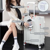 【USB充電ポートと折りたたみ式カップホルダー付き】スーツケースにはUSB充電ポートが付いており、いつでもどこでも充電できます。さらに、便利なカップホルダーが付いており、水筒、コーヒーカップ、その他の飲料容器を置くのに便利です。多機能のデザインと使いやすさが魅力です。