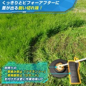 【その他】 ・電動式刈払機専用のナイロンコードカッターの為、エンジン式刈払機でのご使用はお控え下さい。 エンジン式刈払機を使用される場合はEX12をお求め下さい。 ・自動繰り出し機構が正常に動作しない可能性がある為、必ず指定の純正コードをご使用下さい。