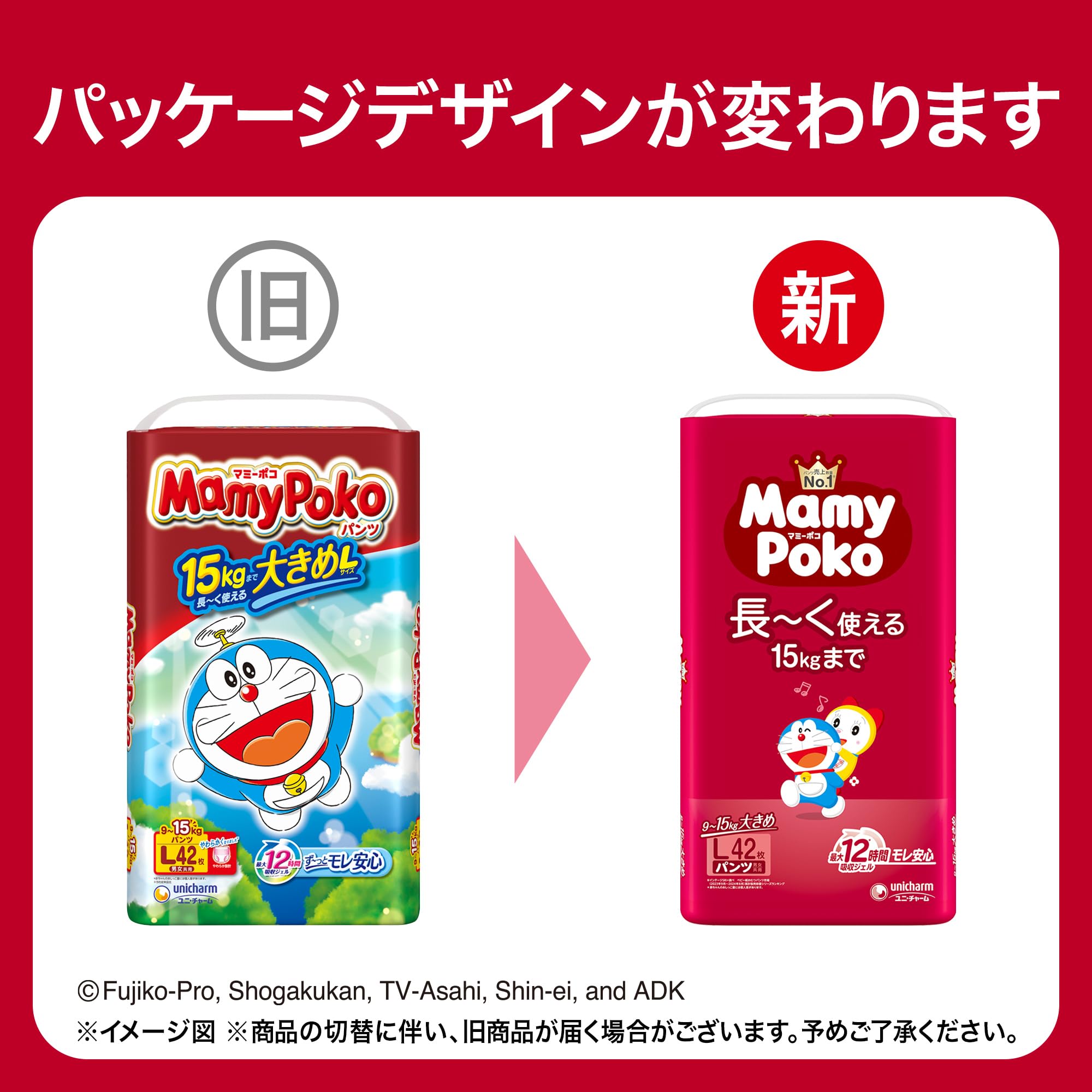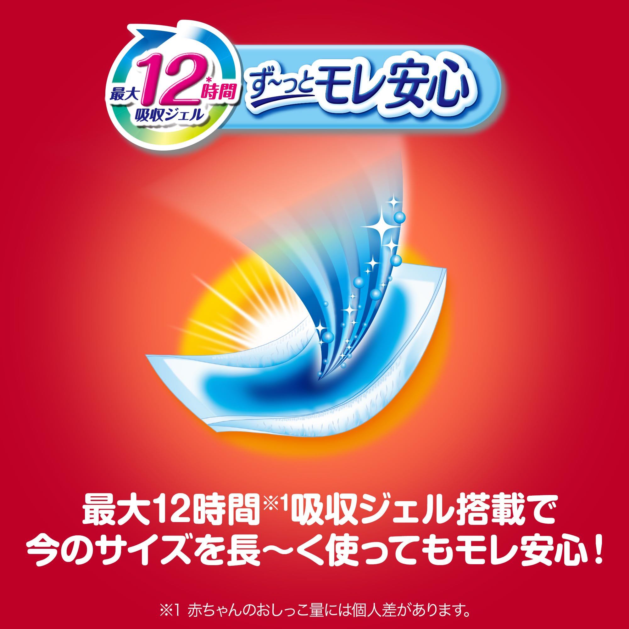 「最大12時間※吸収ジェル」採用のユニ・チャーム独自の吸収体が、繰り返しのおしっこをたっぷり引き込んで素早く吸収!ウエスト・足回りがやわらか設計!※1ウエストは超ふわふわ!足回りは超なめらか!のびのびフィットで履かせやすいかわいいドラえもんデザイン!うしろもまえもカラフル柄。※赤ちゃんのおしっこ量には個人差があります。 ※1当社従来品比