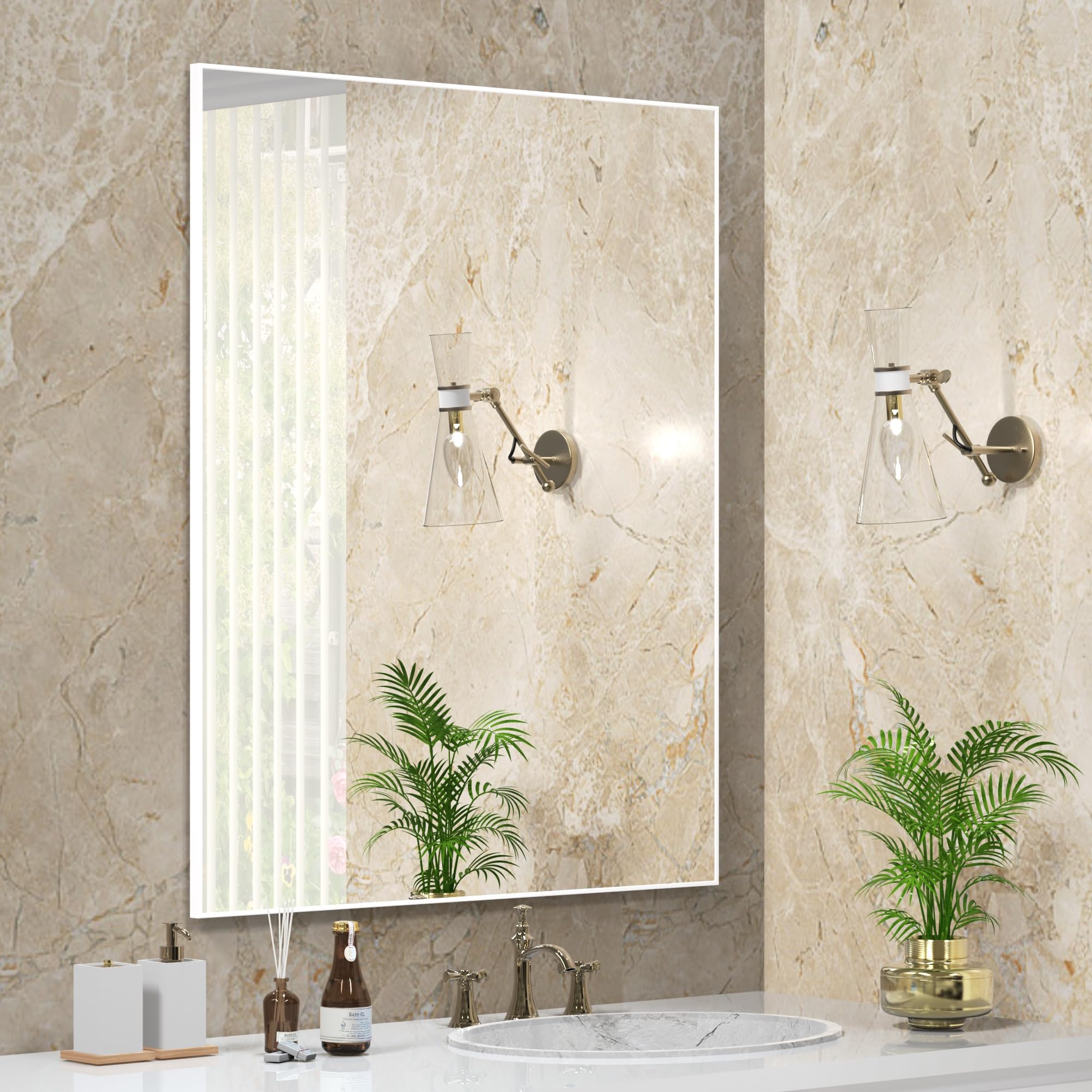 HDホワイトバスルームミラー: 長方形のミラーは明確な反射を提供し、あらゆる角度からのイメージを歪めない高い明快さのガラスから成っています。