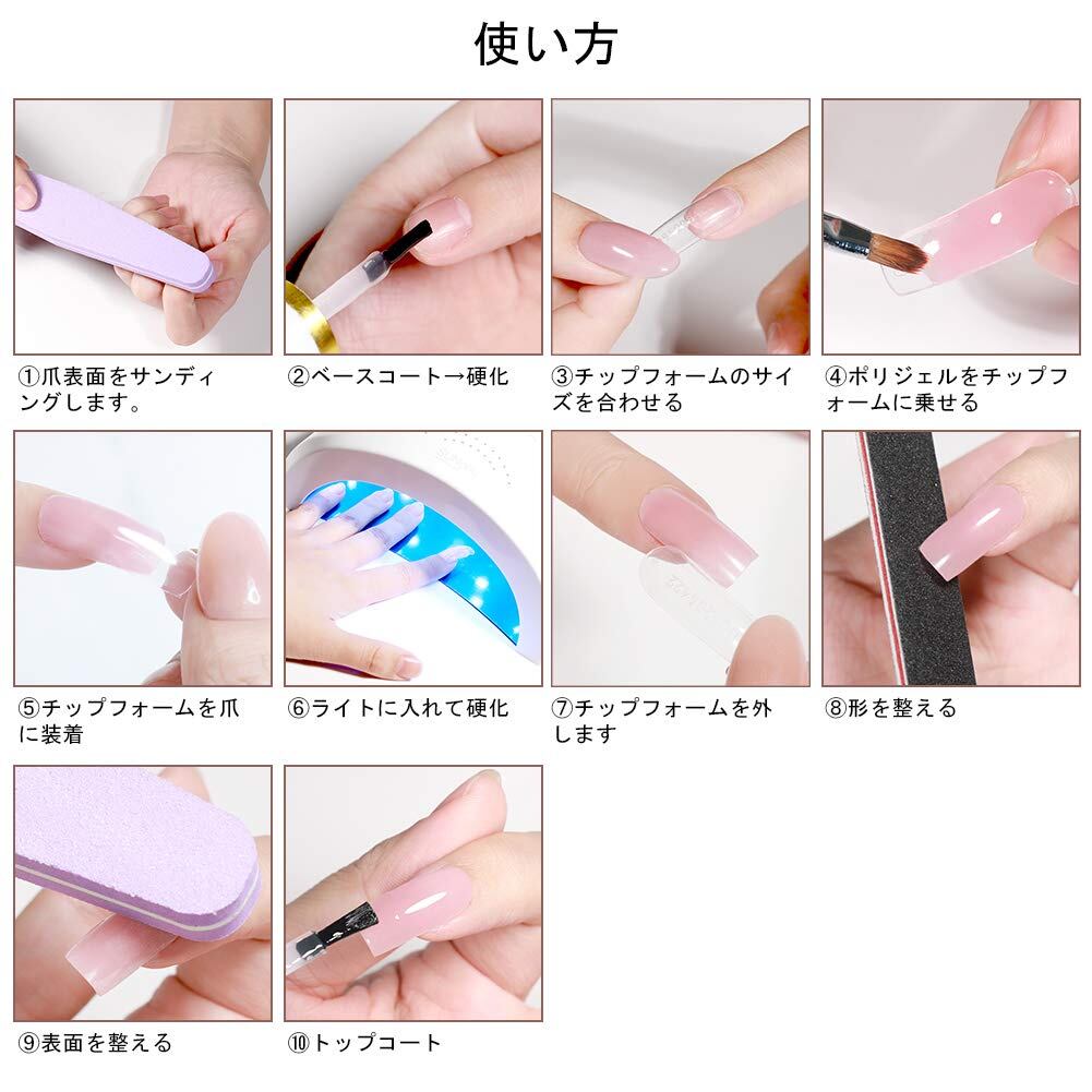 【特徴】ポリジェルはライトにあてるまで硬化しないので、ジェルが流れてきたり、急いで形を整える必要なし!お気に入りの長さや形になるまで何度でも調整することができます。