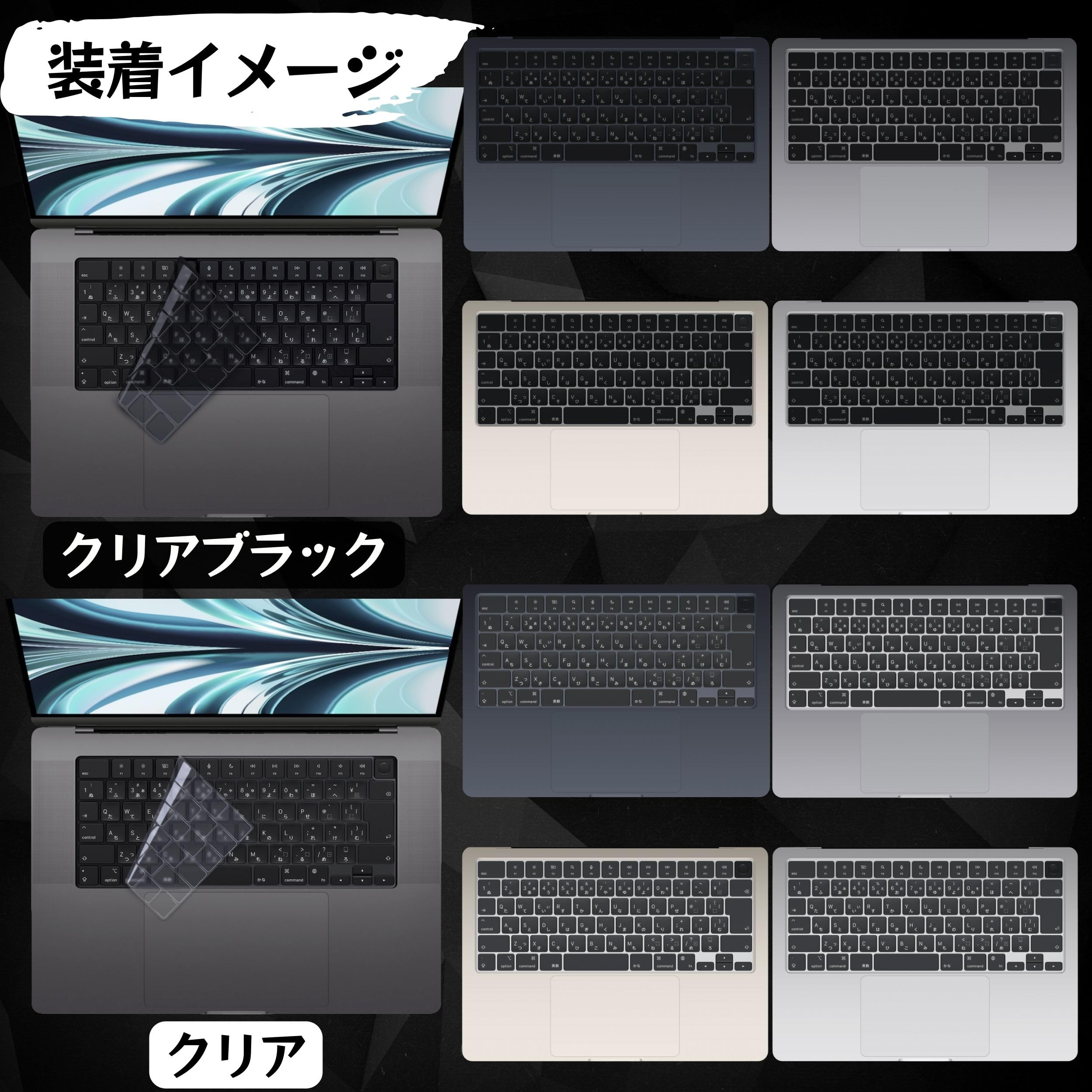 MacBook M2〜M4 JIS配列対応 キーボードカバー 2021〜2025年用 TPU製 (クリアブラック)