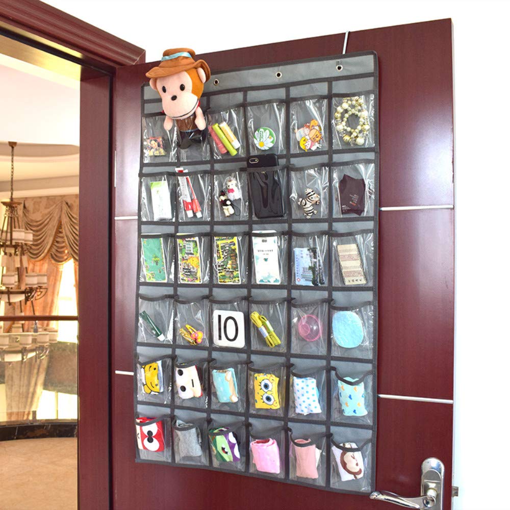 【特価セール】SURCHAR ウォール ポケット カレンダーポケット ポリ塩化ビニル クリア 壁掛け 透明 吊り下げ クローゼット 小物 収納袋 フック付き 2サイズ 12/36 ポケット (グレー36格) | ニコニコSHOP
