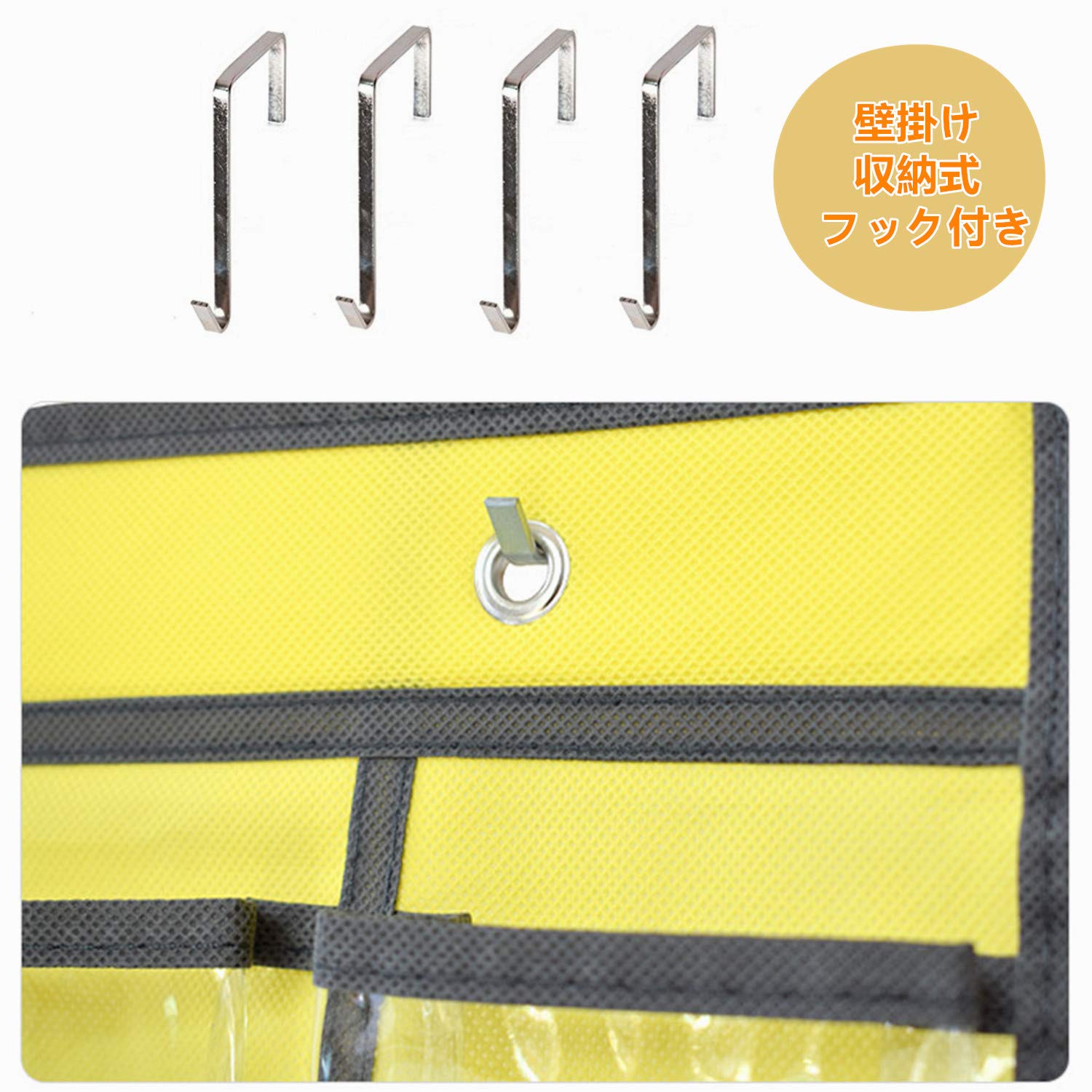 【仕様】2サイズ: 36ポケット: 横60cm高さ96cm、重量約0.35kg。12ポケット: 横30.5cm高さ66.5cm、重量約0.15kg。それぞれのポケット: 横9cm高さ12cm 。36ポケットには4つのフックが付いています、12ポケットには2つのフックが付いています。クリア カレンダーポケット。