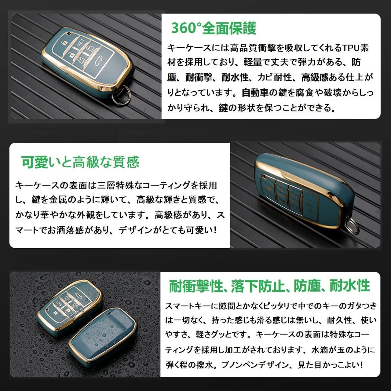 【360°全面保護】キーケースには高品質衝撃を吸収してくれるTPU素材を採用しており、軽量で丈夫で弾力がある、防塵、耐衝撃、耐水性、着地緩衝の効果があります。キーケースの表面は特殊なコーティングを採用し加工がされております、水滴が玉のように弾く程の撥水、自動車の鍵を腐食や破壊からしっかり守られ。360°全面保護、するため 落としてもキーに 傷がつくことはありません。