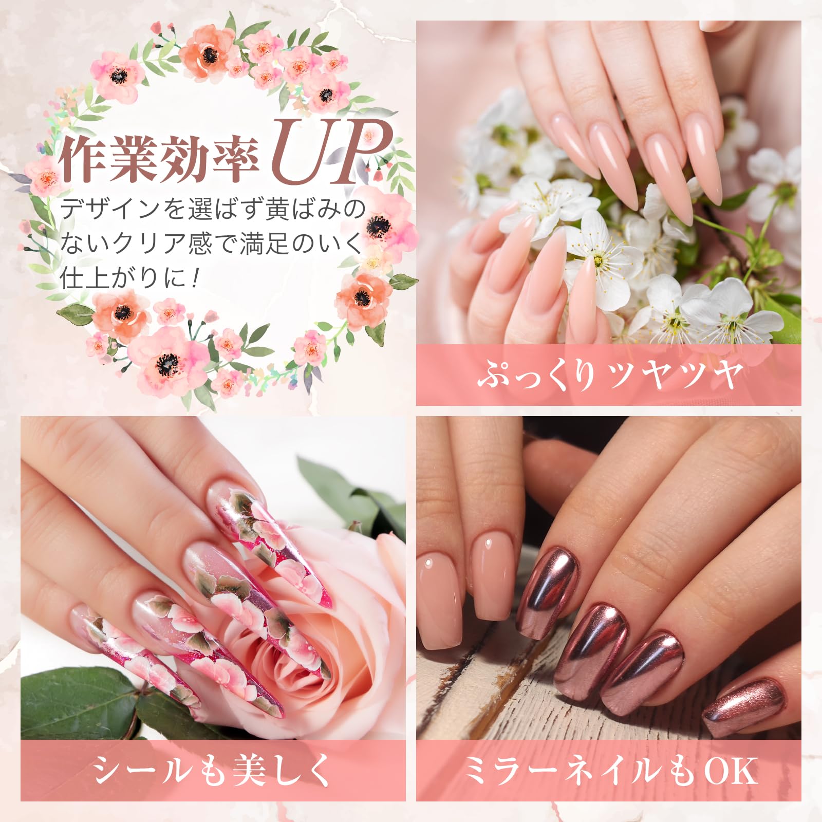 サロン様が求めていたノンワイプでの速攻硬化のジェルがついに完成 さらにカラージェルやアートを引きだたせる透明感が美しい仕上がりに!