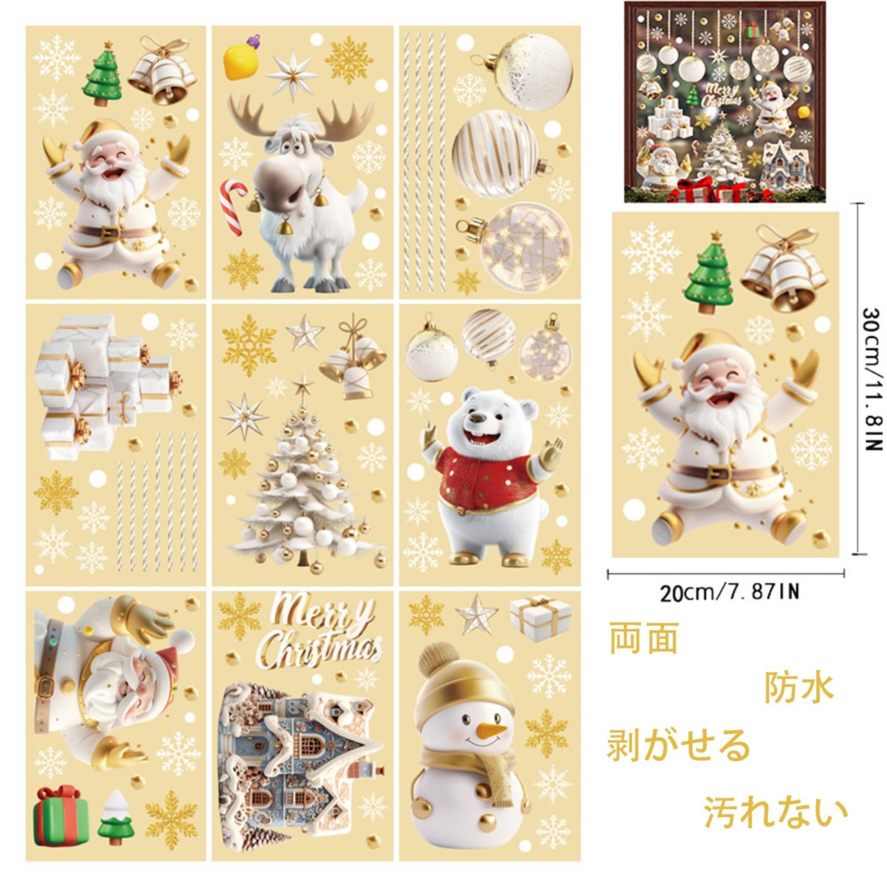 跡が残らない:静電気ステッカーなので、剥がした時に窓や鏡に跡がついていません。両面のデザイン、部屋から見ても外から見てもきれいです。