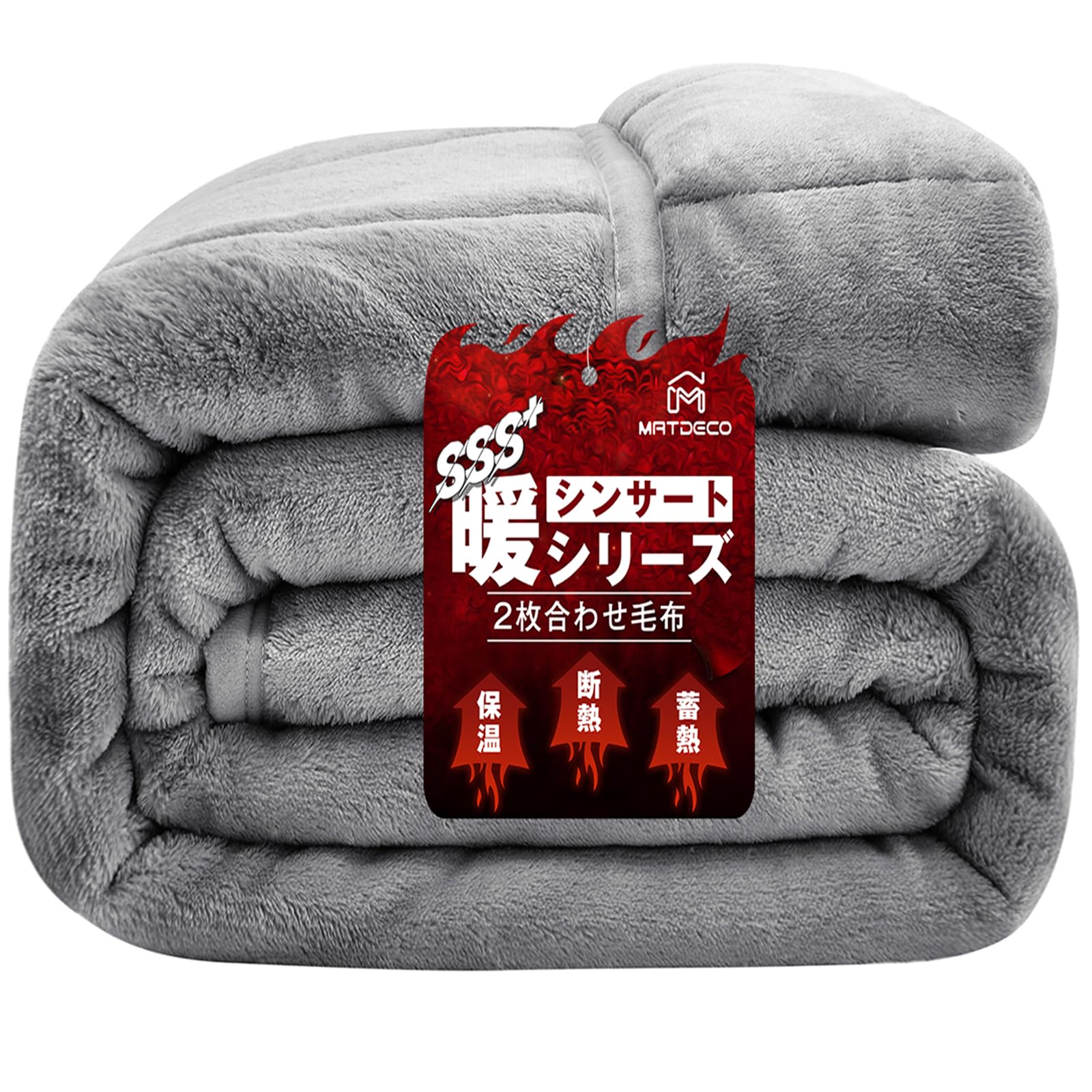 Matdeco 毛布 シングル 冬 厚手 ブランケット 冬用 掛け毛布 2枚合わせ 高機能中綿素材シンサート使用 四層構造 襟付き 洗える フランネル 断熱素材 超極細繊維 モフモフ 保温 軽量 毛抜けない 静電気防止 140×200cm グレー