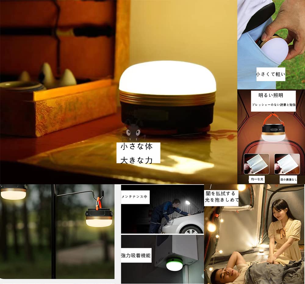 ランタン:小さく軽いので、アウトドア用としての持ち歩きや、非常時の持ち出し用にも便利です。三つ調光モードがあるので、強モード、弱モードSOS点滅モードも搭載、状況によって利用が可能です。