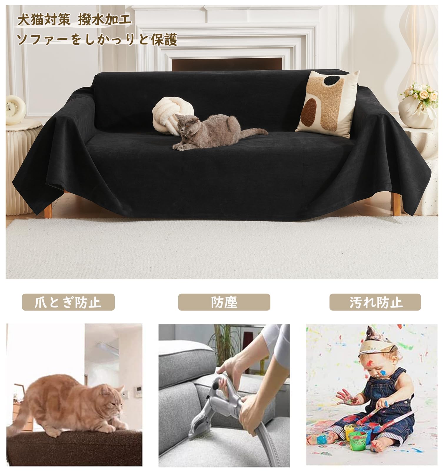 【特価セール】HomeFirst ソファーカバー 犬猫対策 北欧風 マルチカバー 長方形 大判 撥水加工 ソファカバー 2人3人掛け 肘付き 肘なし 柔らかい ソファーベッドカバー 多機能 ブランケット 無地 ソファーシーツ 犬猫用シート 爪とぎ防止 傷防止 汚れ防止 防塵 ソファー保護カバー 洗える 四季通用 ブラック 180cm*300cm | ニコニコSHOP