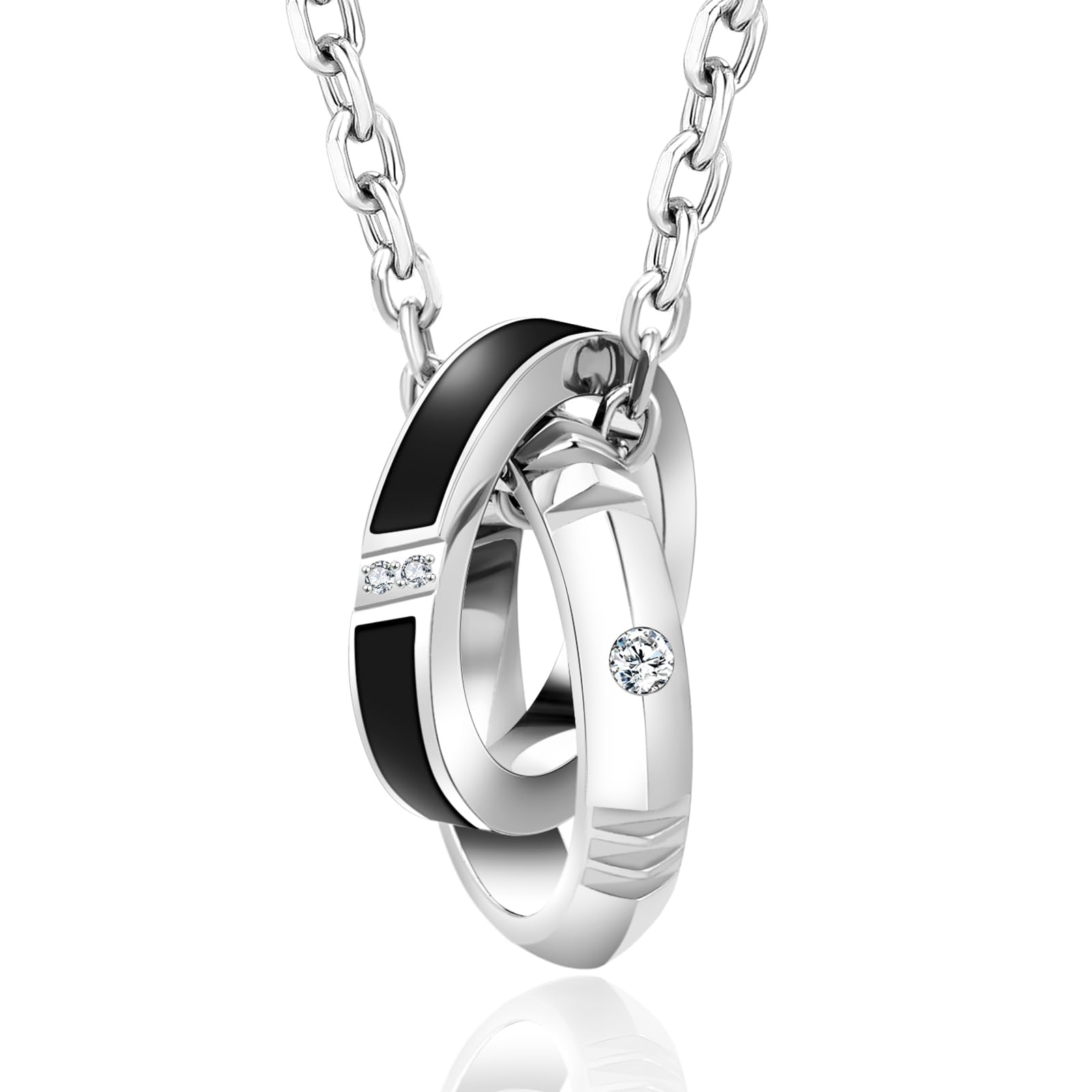 【数量限定】KRKC&CO リングネックレス メンズ 誕生日プレゼント 男性 ペンダントトップ チェーンネックレス ダブルリング サージカル ステンレス ペアネックレス 男女兼用 シルバー ブラック 金属アレルギー対応 | ニコニコSHOP
