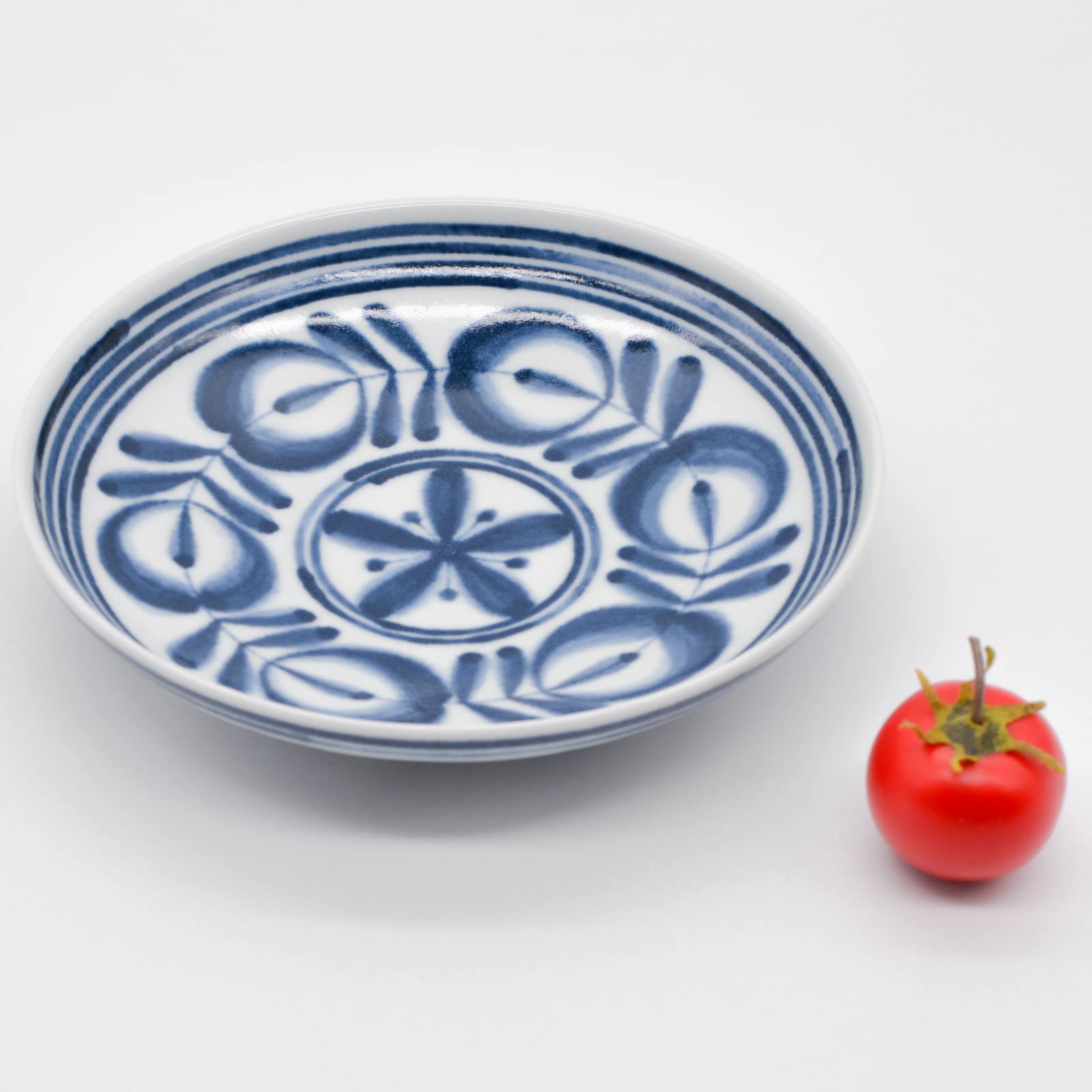 波佐見焼 モダンブルー 取皿 プレート (M) 直径約15cm 聖栄 花柄 北欧 電子レンジ 食洗機対応 磁器 日本製 73509